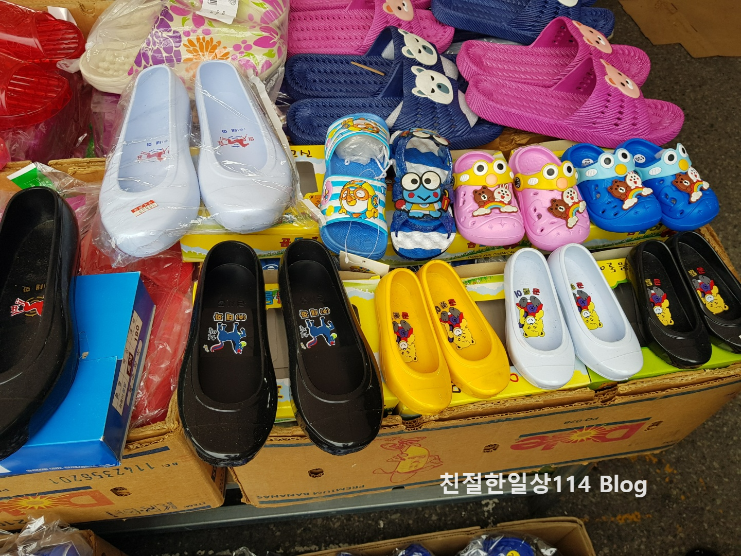 비가 자주오는 여름이 되니 신발속으로 물이 들어와 불편하다. 더구나 잠시라도 마당과 화단에 다녀오면 흙과 풀이 신발에 묻어 현관이 금방 더러워진다. 그래서 필자가 신을 장화(레인부츠)와 딸아이 고무신을 사기 위해서 재래시장에 들렸다.