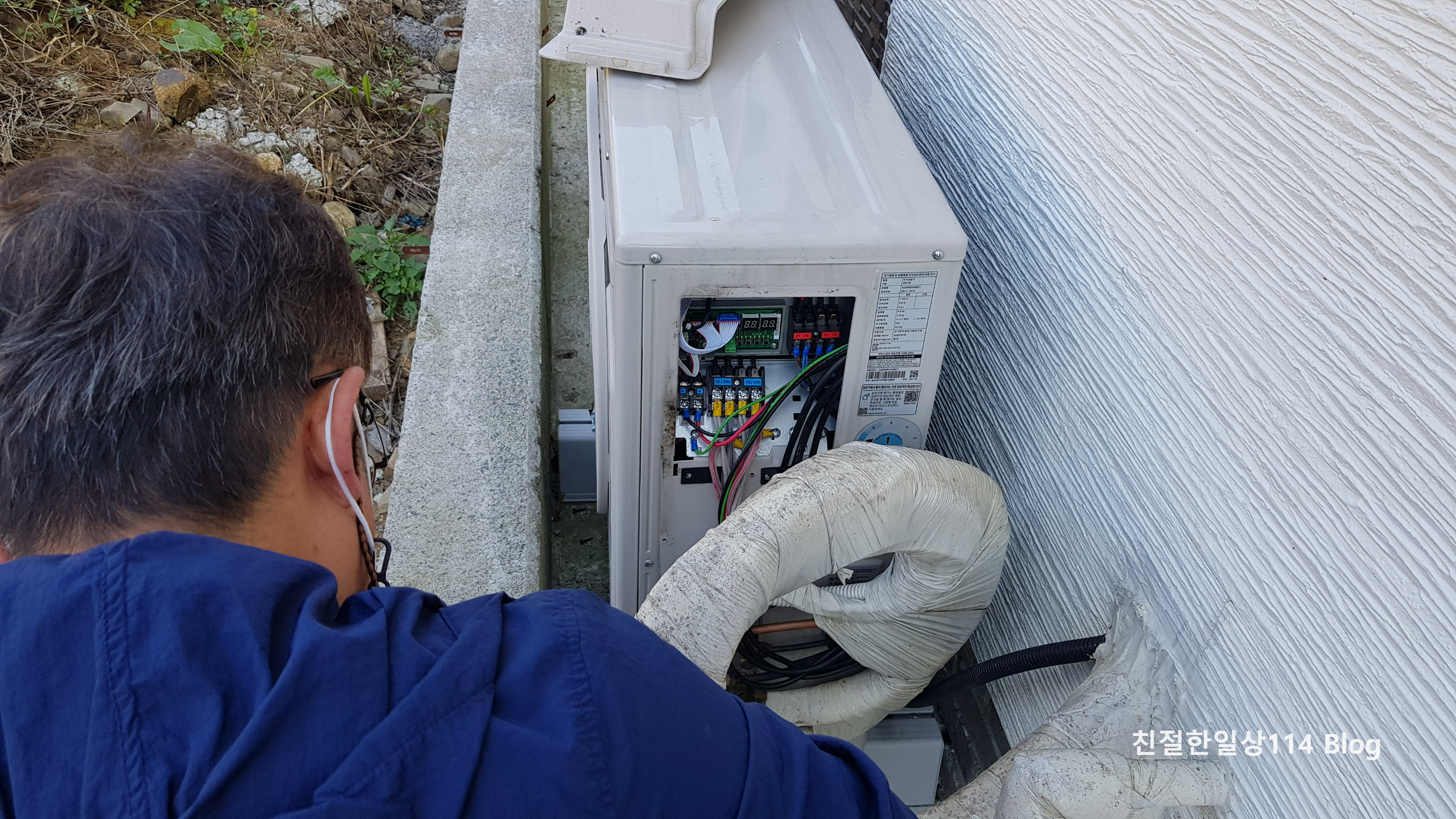 AS 받기로 한날 에어컨 설치 업체 사장님께서 휴대용 계기판 같은 걸 들고 오셨다. 그리고는 바로 실외기로 직행하며 에어컨 4개를 다 켜보라고 한다.