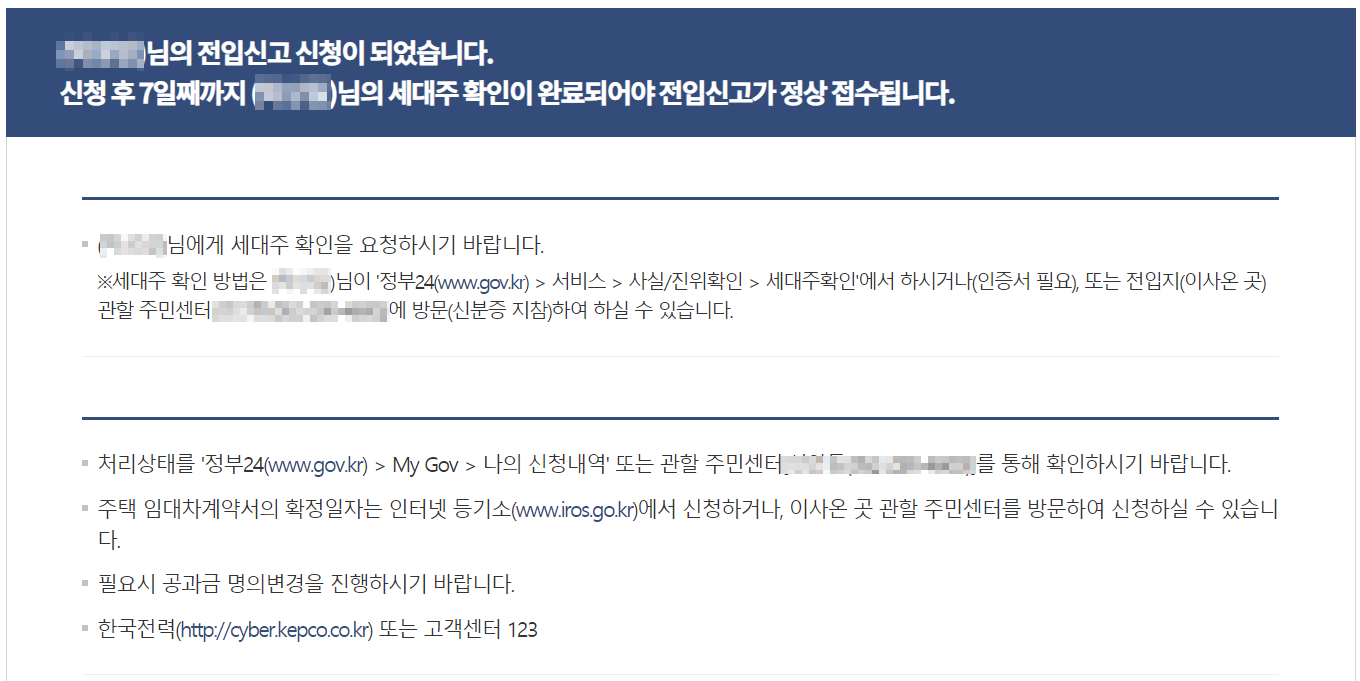 - 이사온 곳에 기존에 살고 있는 세대주가 있는 경우 (전입지 세대주가 확인)
