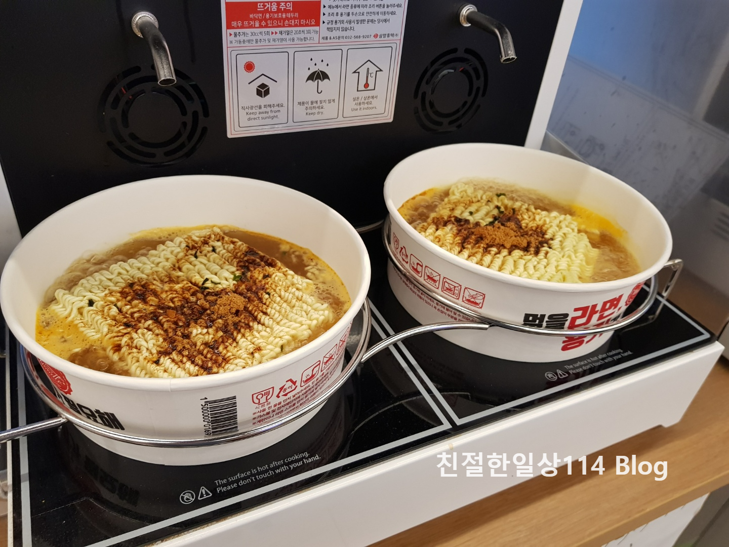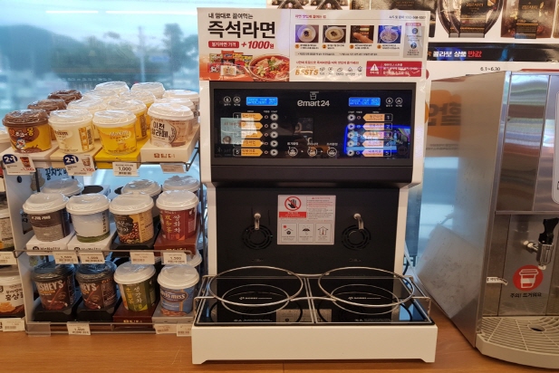 날이 더워지니 입맛도 없고 주방에서 준비하고 뒷정리하려니 귀찮다. 얼마전 들렸던 이마트24 편의점에서 즉석라면 기계를 봤던 기억이 난다. 그래서 오늘 저녁밥은 편의점에서 즉석라면으로 외식을 하기로 결정한다.