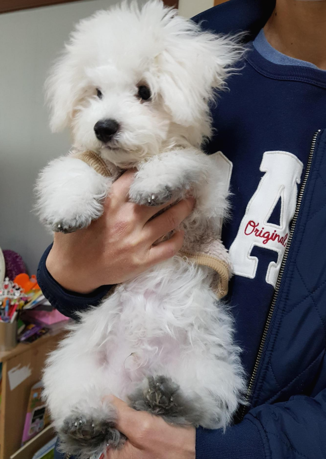 울타리, 방석, 이동가방, 배변판, 배변패드, 사료(로얄캐닌 스타터1kg, 미니 1.5kg), 밥그릇, 위생용품(귀세정제, 안구세정제, 눈주변세정제, 배변유도제, 냄새탈취제, 구강스프레이) 슬리커, 얼굴빗, 눈꼽빗, 발톱깍이, 목줄, 간식, 기생충퇴치제(스팟온), 습식사료, 영양제, 유산균, 목욕샴푸, 목욕린스