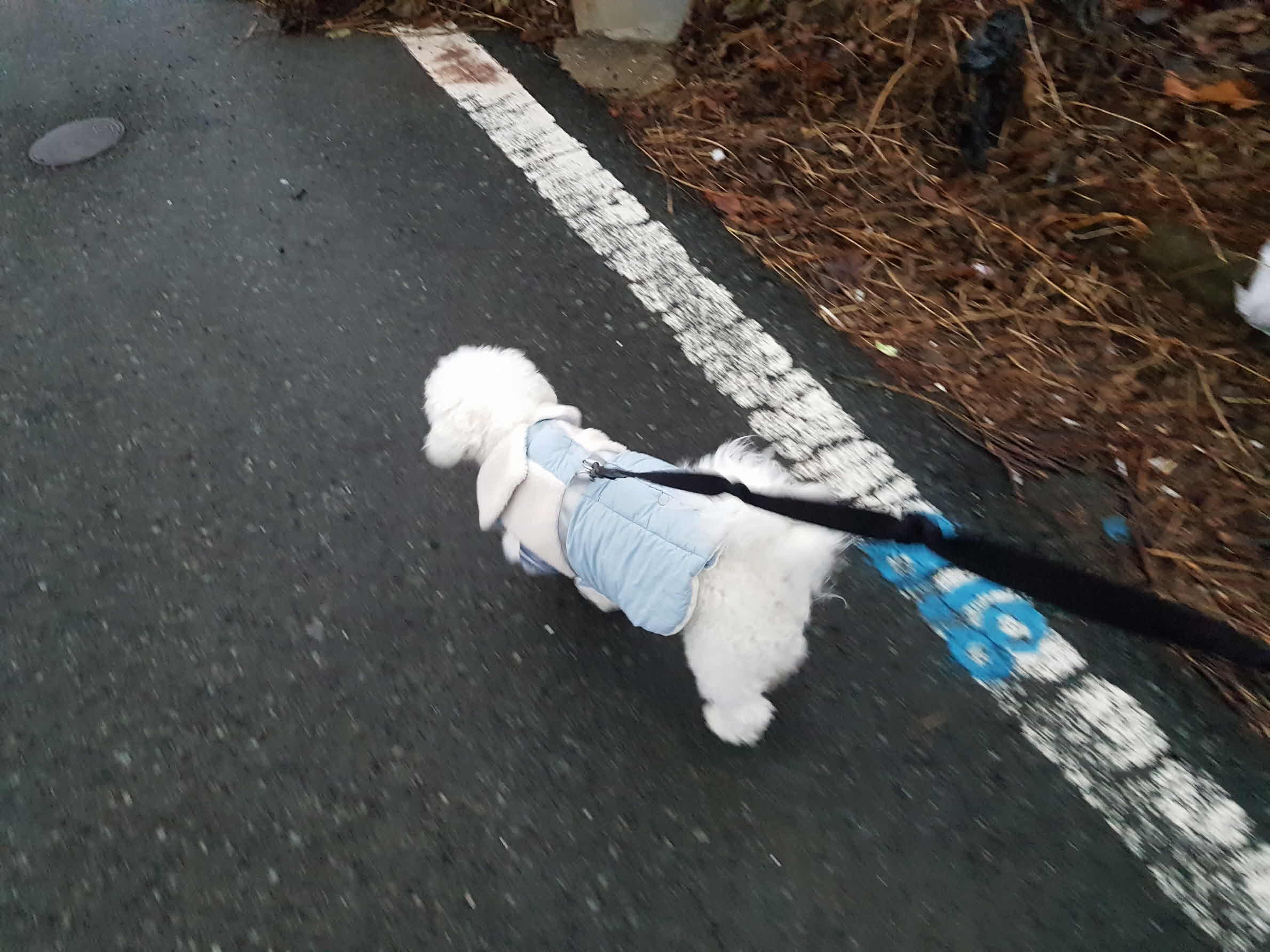 오늘은 기온이 영하로 떨어졌기에 옷을 두껍게 입혀 산책을 나가기로 한다.