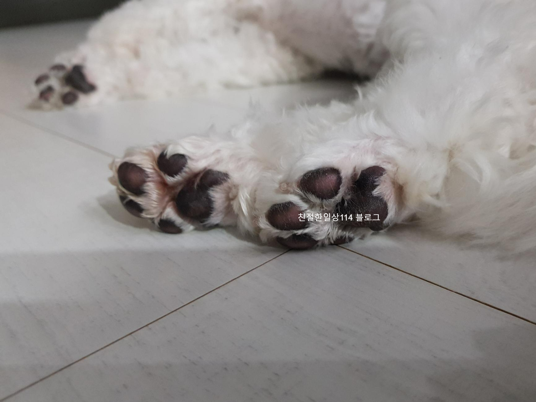 하루에도 몇번씩 안보이는 마늘이를 찾아 발이 젖어있으면 닦아주고 말려준다. 힘들고 번거롭다. 혹시 심해져서 피부병에 걸리면 안된다! 피부병에 걸려서 고생하는 견주와 강아지를 본적이 있는 필자이기에 피부병은 안걸리도록 많은 신경을 쓰고 있다.