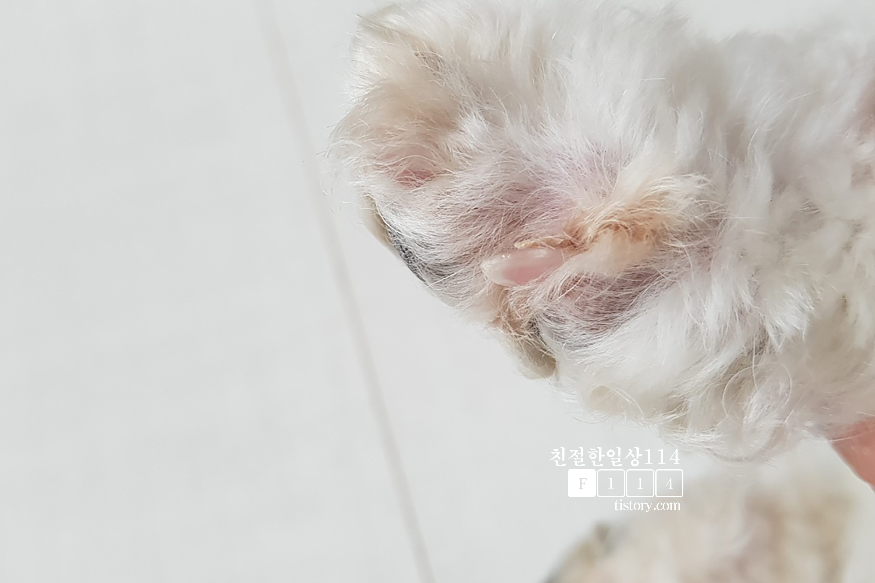 여느때 처럼 미용실에 다녀오고나서 불편해진 심기를 풀어주고 있는데 뒷발을 계속 핥고 깨물고 빤다. 미용실에 다녀온그날 뿐만 아니라 다음날도 며칠이 지나서도 계속해서 입에 넣고 빨아서 항상 축축한건 둘째치고 피부가 빨개지고 발가락이 붓기까지 했다. 그냥 둬서는 안되겠다 싶어 동물병원에 데리고가서 상담을 받아 보았다.