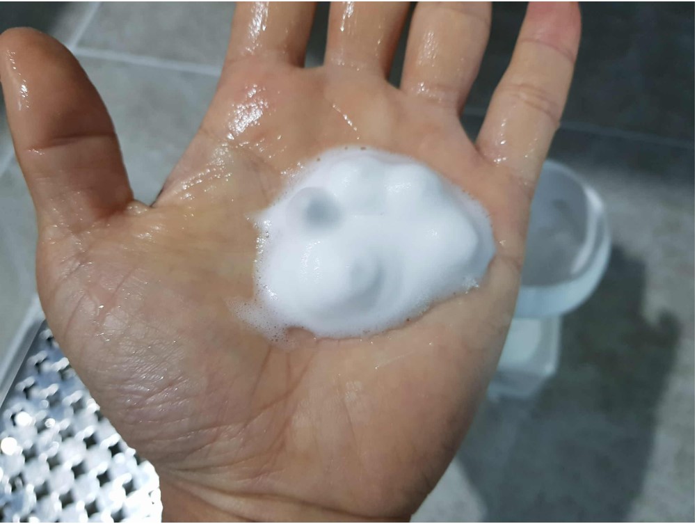 손바닥으로 눌러서 거품을 내면 강아지 발다닥 모양으로 찍힌다는데,, 잘 안된다. 조금은 통통하게 살찐 강아지 발바닥 모양 같다.