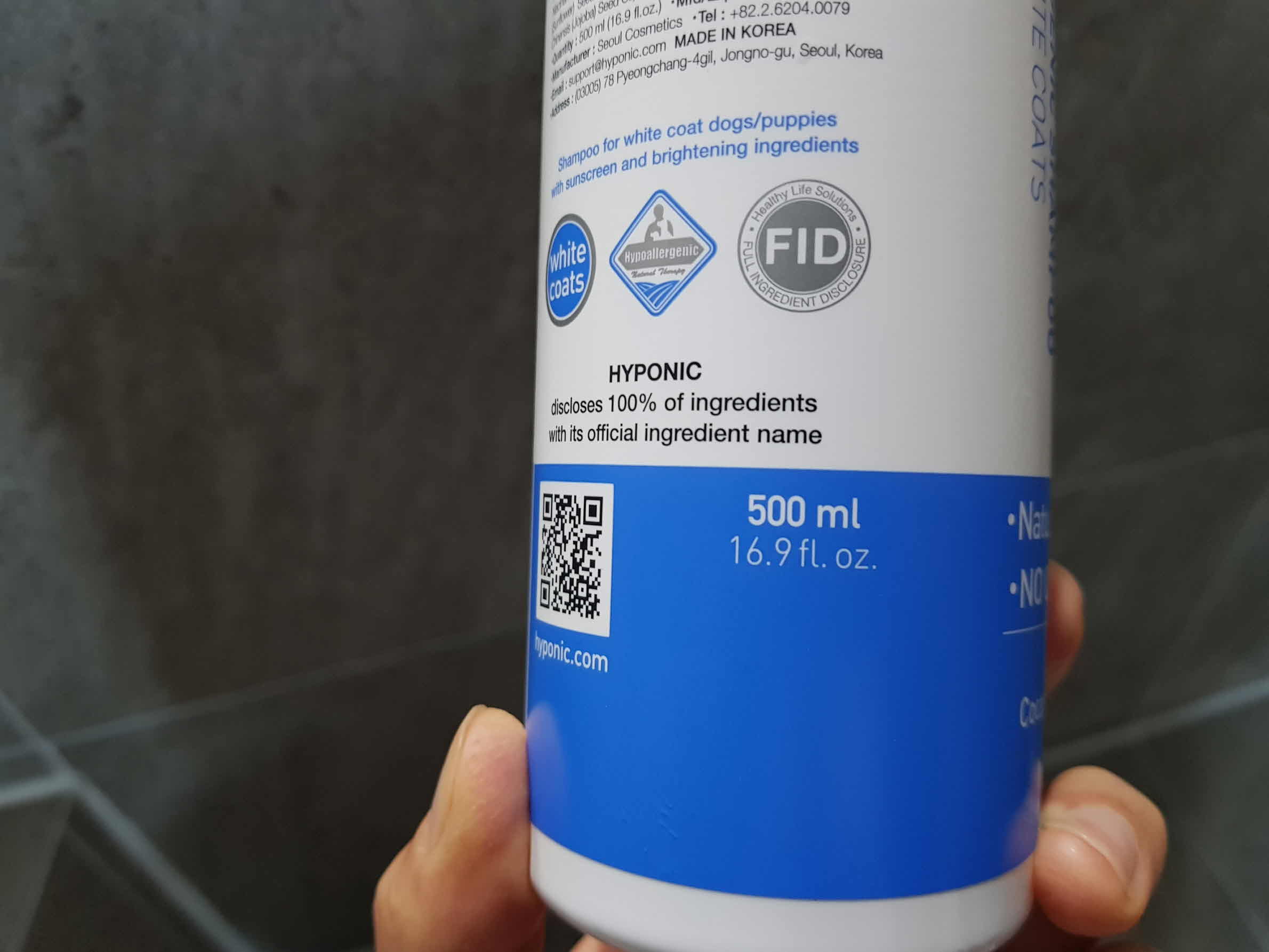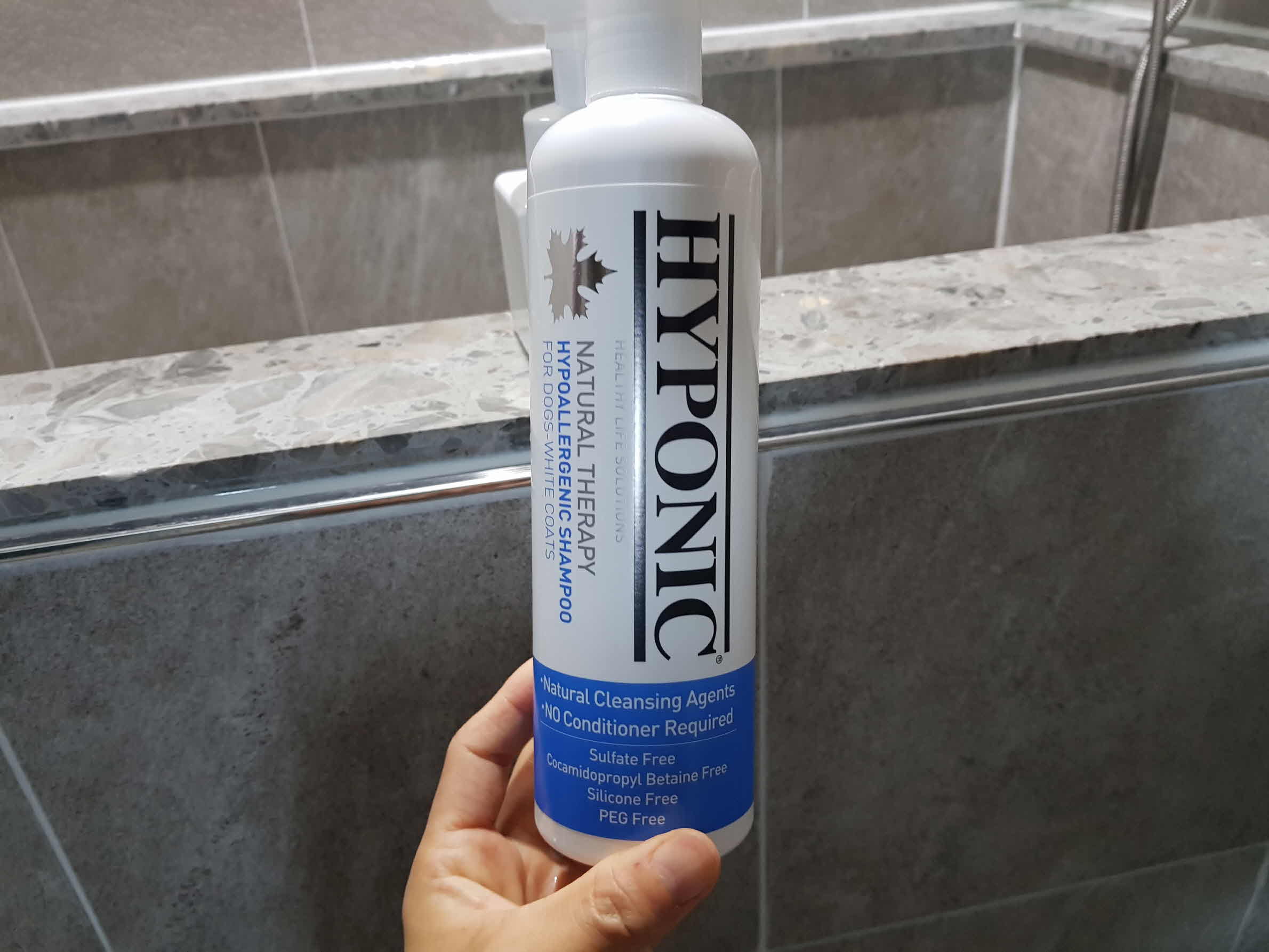 지금까지 사용해오고 있는 샴푸는 하이포닉사의 흰색 털 강아지용으로 천연 오일이 원료로 들어간 샴푸이다.