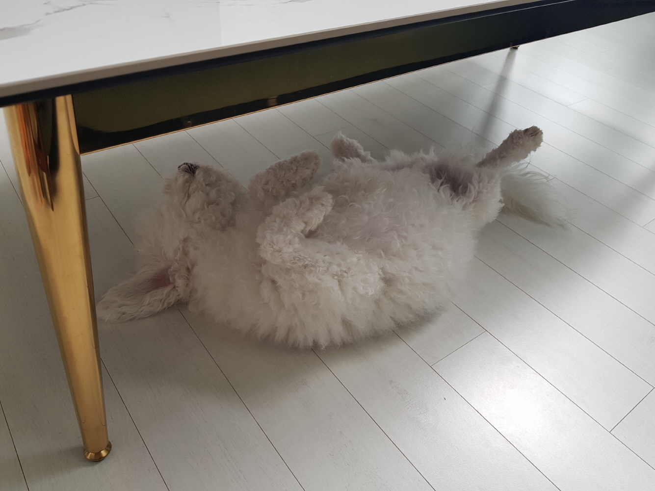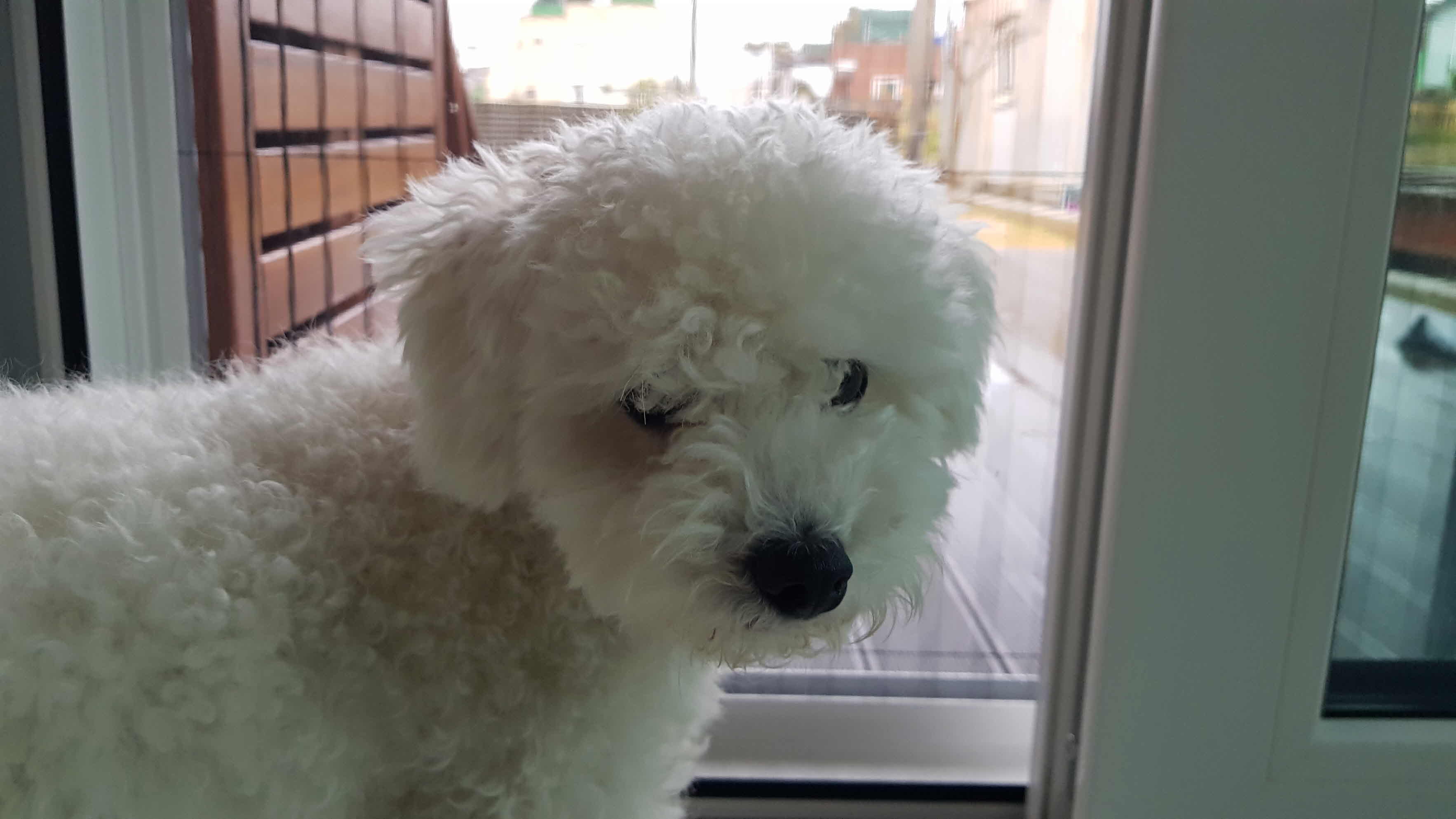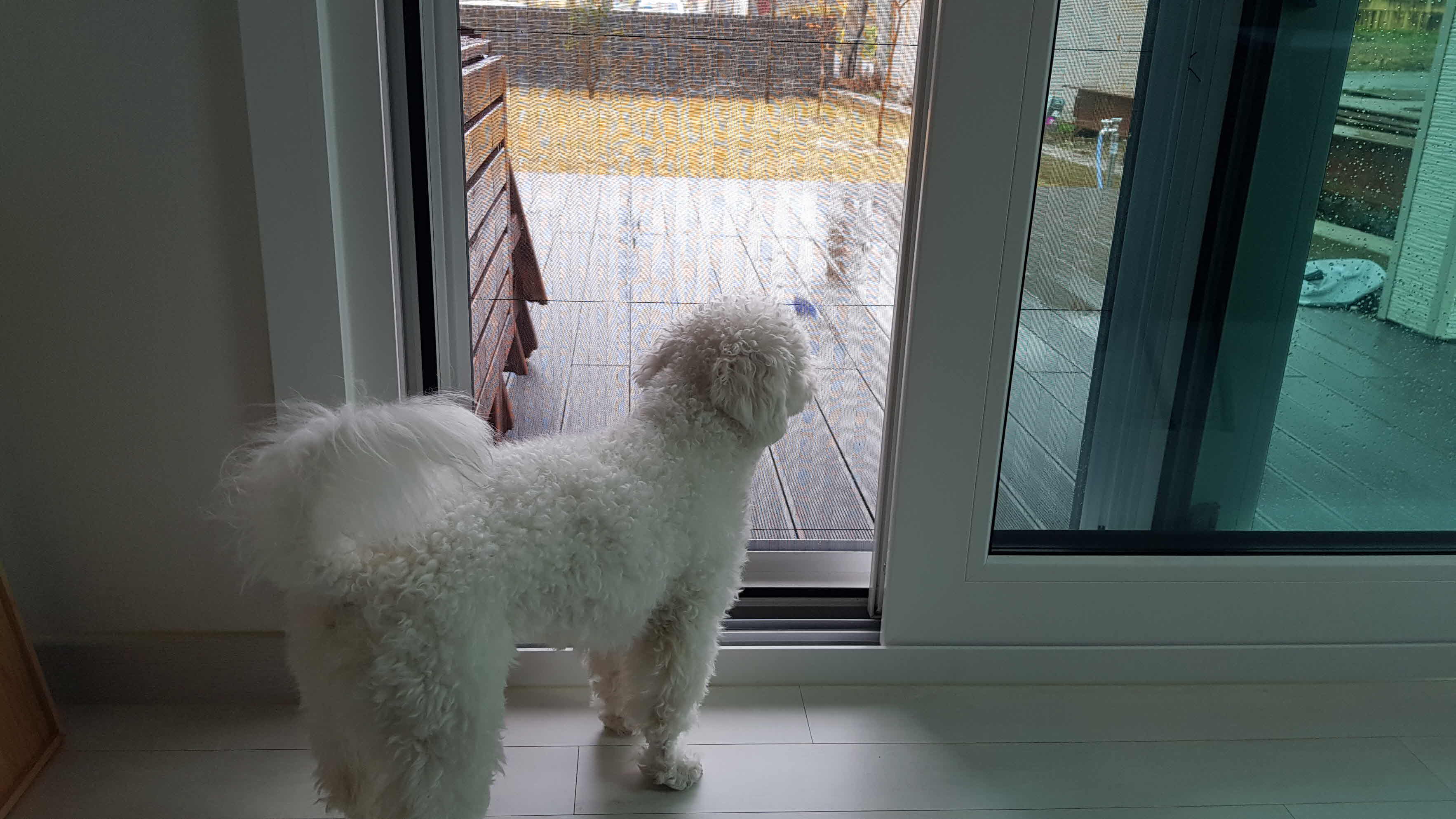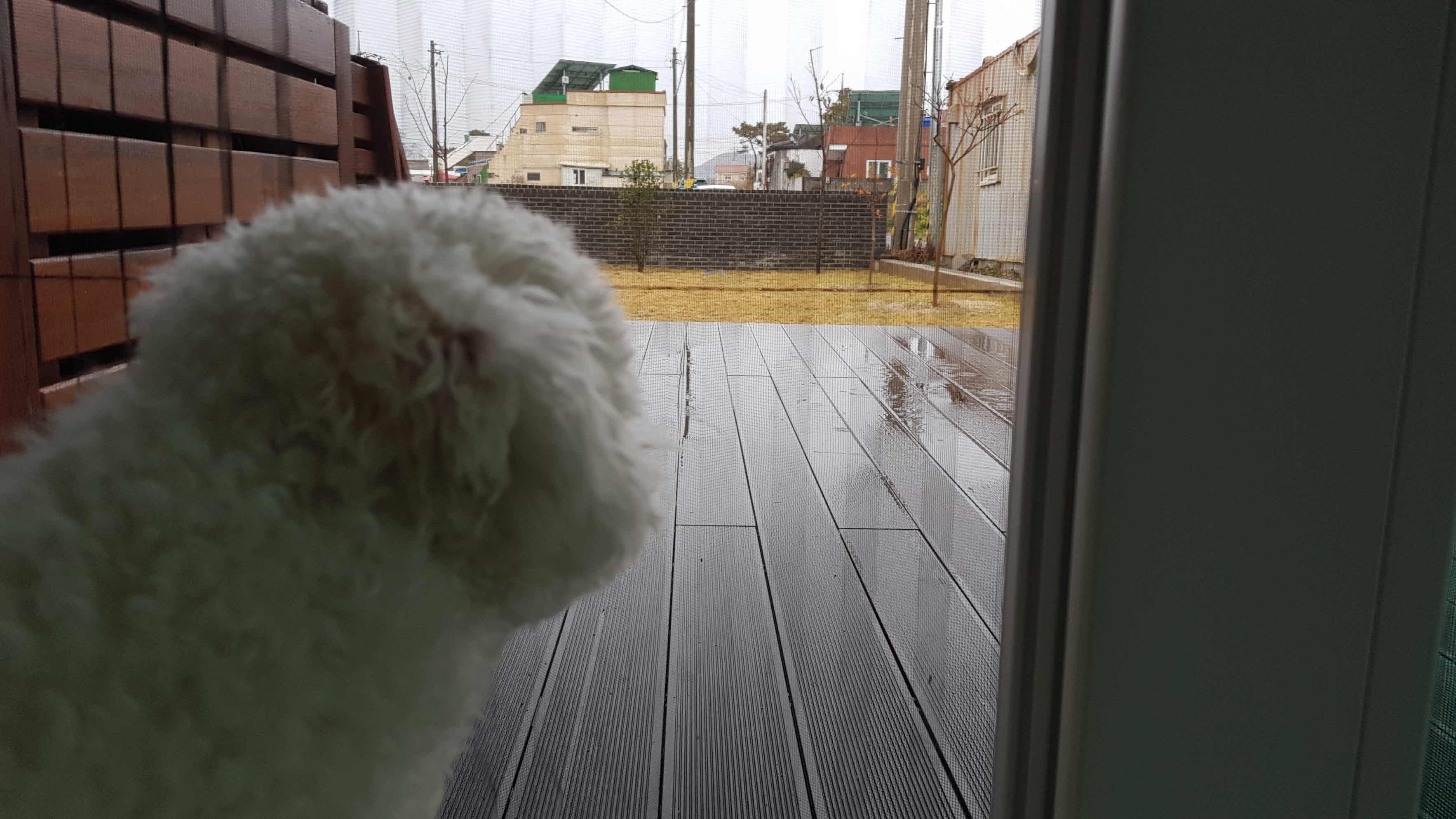 되도록이면 매일 정해진 시간에 산책을 나가지만 이렇게 가끔 날씨가 안 좋아 못 나갈 때가 있다. 그럴 때는 강아지도 나도 아쉬운 마음이 든다.