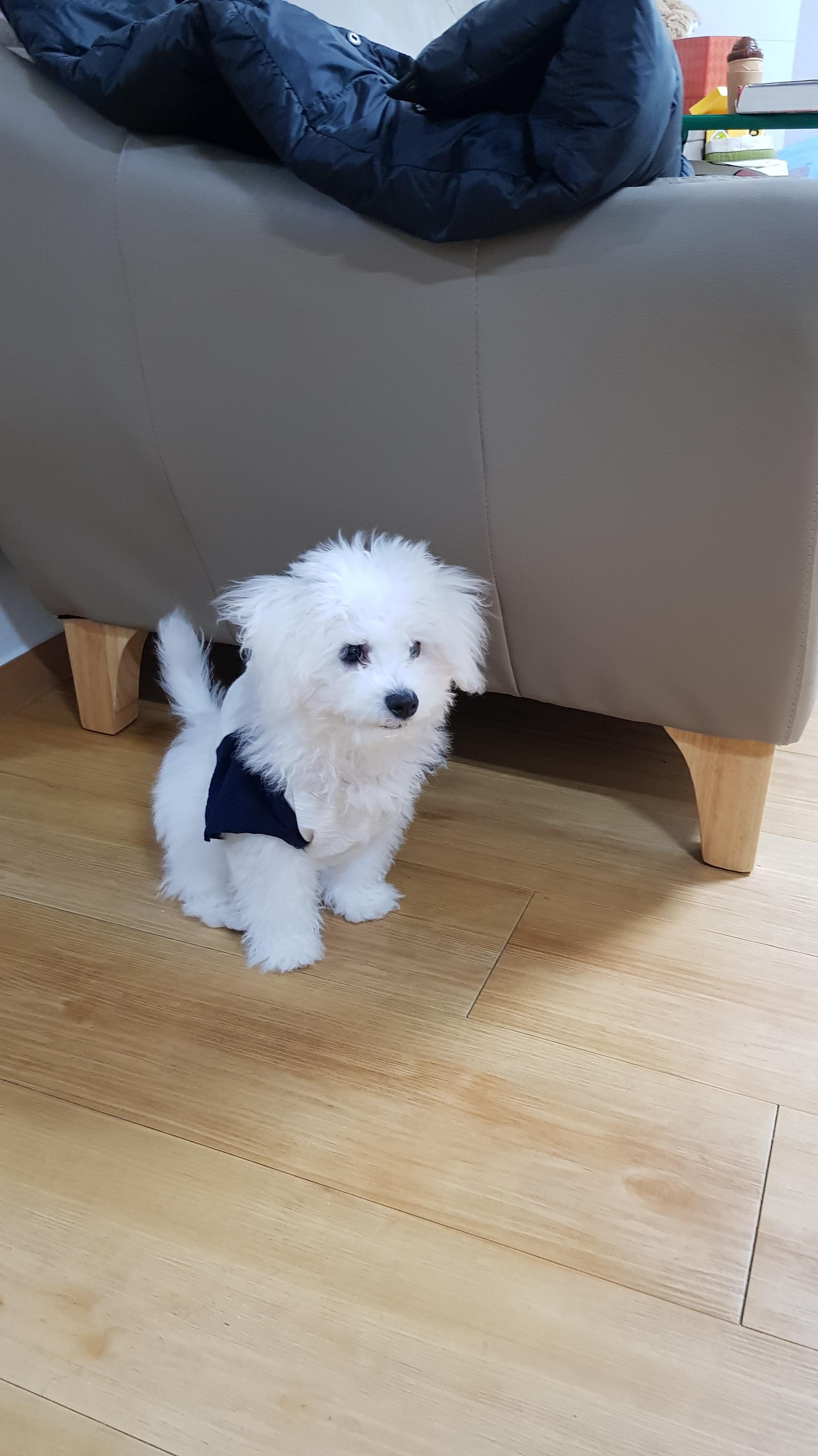 어린 강아지의 경우 바깥 기온이 15도 이하가 되면 옷을 입혀서 나가는게 좋다. 강아지 옷이 없어서 딸아이가 어릴떄 입었던 옷을 리폼?했다.