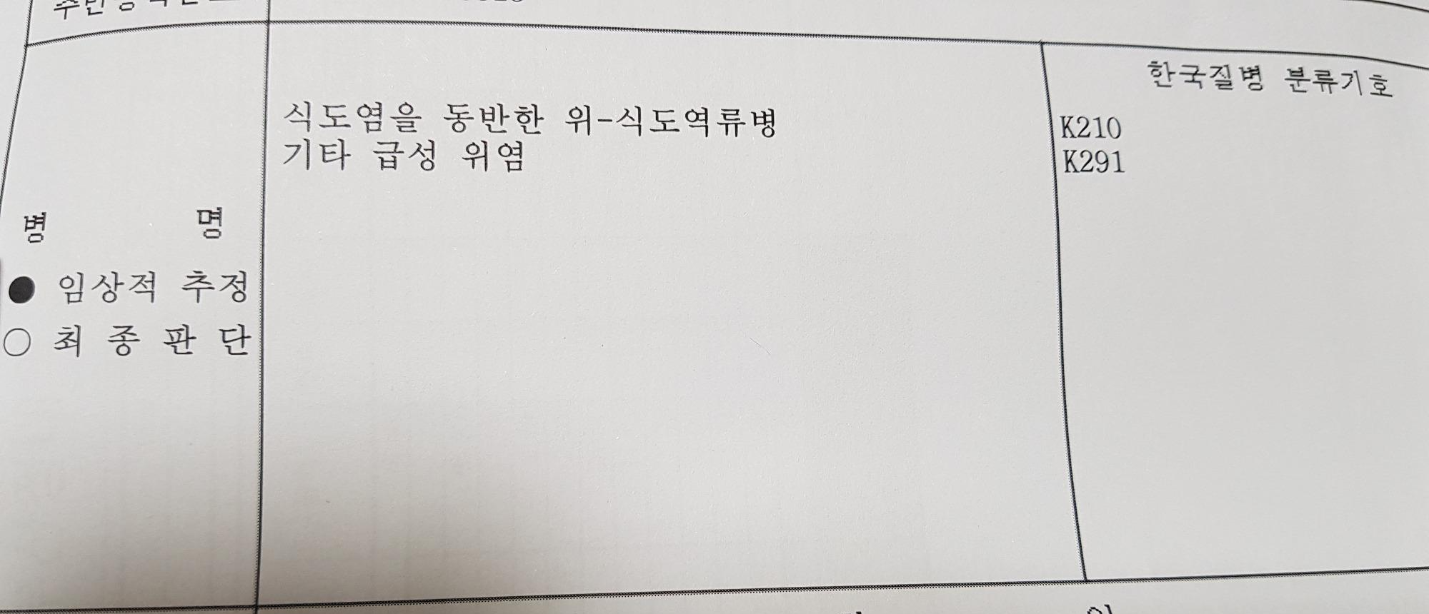 걱정되었던 아내의 위내시경 검사결과는 '식도역류병, 급성 위염' 이라는 결과가 나왔다.