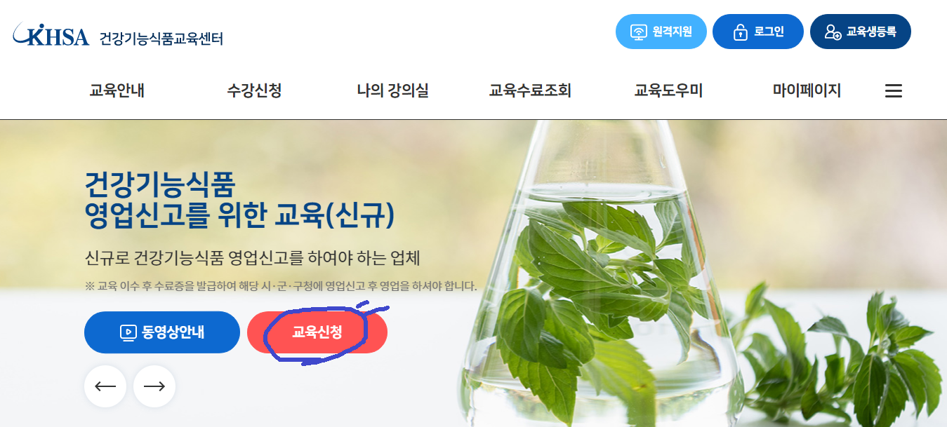 이제부터 본격적으로 건강기능식품 판매 교육 신청하는 방법에 대해서 알아보겠다. 그렇게 어렵지 않으니 건강기능식품교육센터 홈페이지에서 직접 해도되며 아래에 순서대로 사진과 설명을 올려두니 참고해서 해도 되겠다.