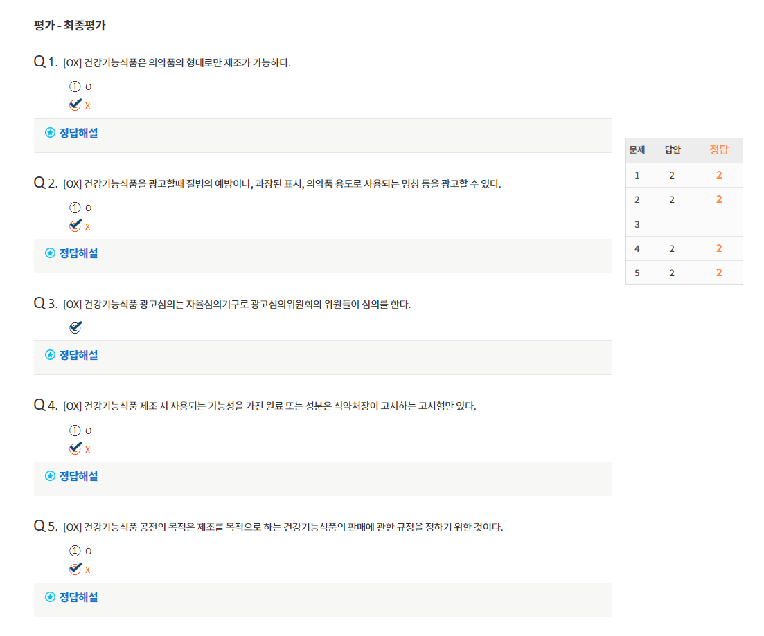 건강기능식품 교육을 받아보니 시간이 오래걸리는 것도 아니면 집에서 온라인으로 받을 수 있어서 제약이 거의 없어서 좋았다. 시험문제 난이도도 낮아 마음만 먹으면 누구나 받을 수 있을 것이다.