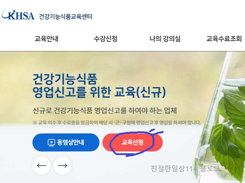 이제부터 본격적으로 건강기능식품 판매 교육 신청하는 방법에 대해서 알아보겠다. 그렇게 어렵지 않으니 건강기능식품교육센터 홈페이지에서 직접 해도되며 아래에 순서대로 사진과 설명을 올려두니 참고해서 해도 되겠다.
