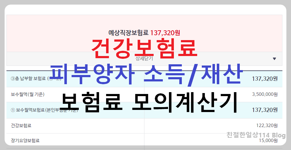 아래 링크를 걸어두니 한번쯤 계산해보고 내가 납부하는 건강보험료가 얼마인지를 알아두면 좋겠다.