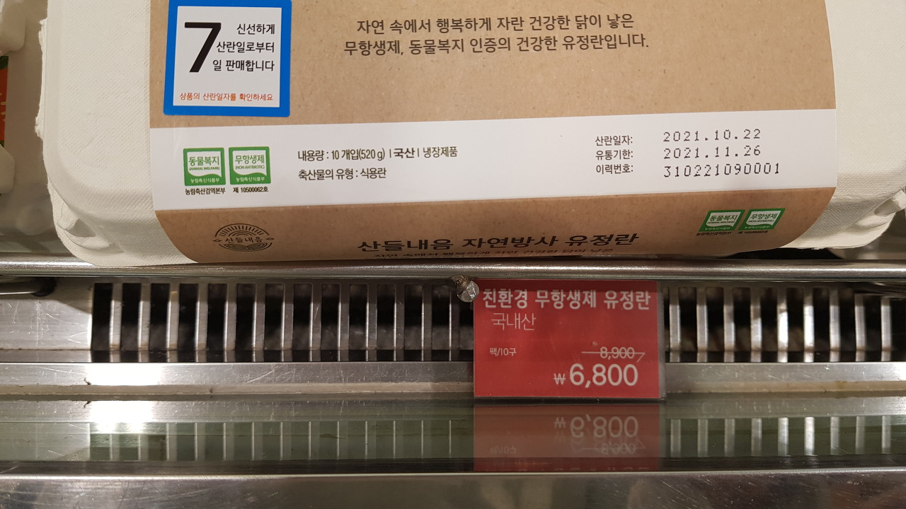 백화점에는 다른 볼일이 있어서 들렸다가 계란이 생각나서! 식품매장으로 내려가 계란 껍질을 들여다 보았다. 백화점은 괜시리 비싸기만하고 낮은 등급의 계란이 있는게 아닌가 의심이 되었지만 보도록 하겠다.