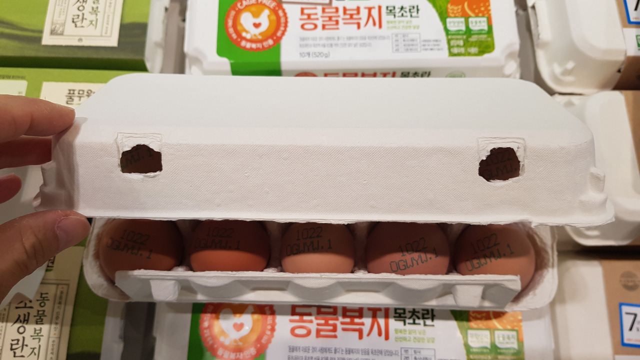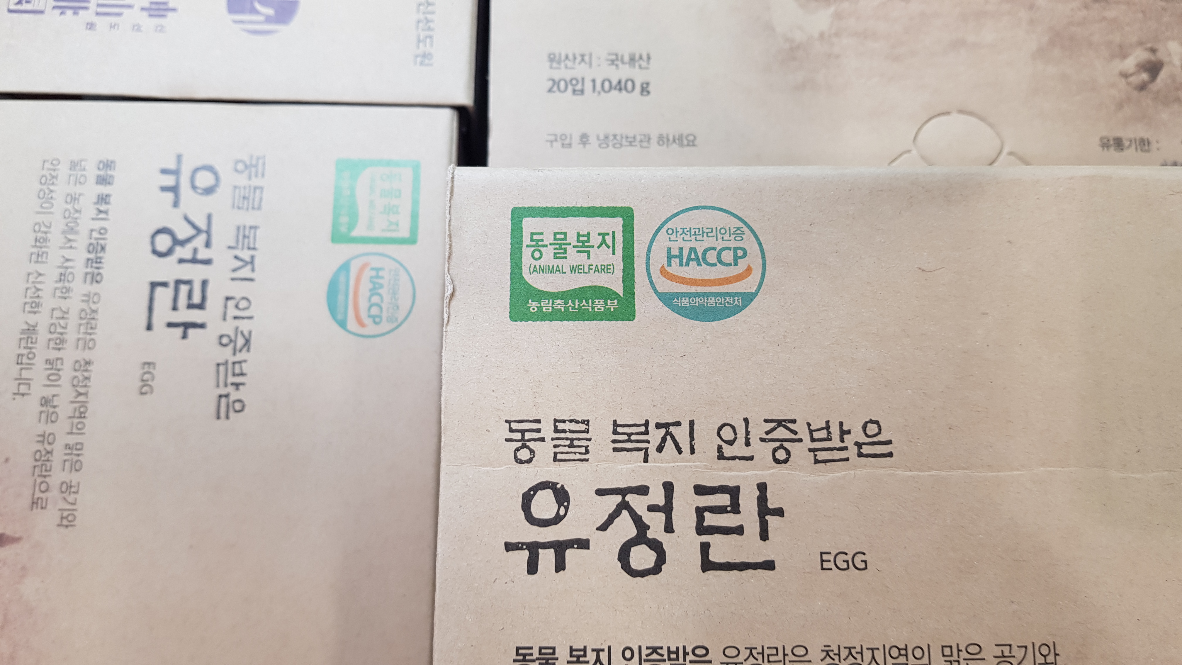 너무 잘? 포장이 되어있어서 포장지를 벗겨내고 열어봐야 사육환경등급을 확인할 수 있다. 소비자가 구매할때 보기 편하도록 난각표시를 해둔 걸 굳이 보기 어렵도록 포장을 해놓는지 모르겠다. 코스트코의 포장처럼 안이 조금이라도 들여다 보이도록 개선되면 좋을 듯 하다.