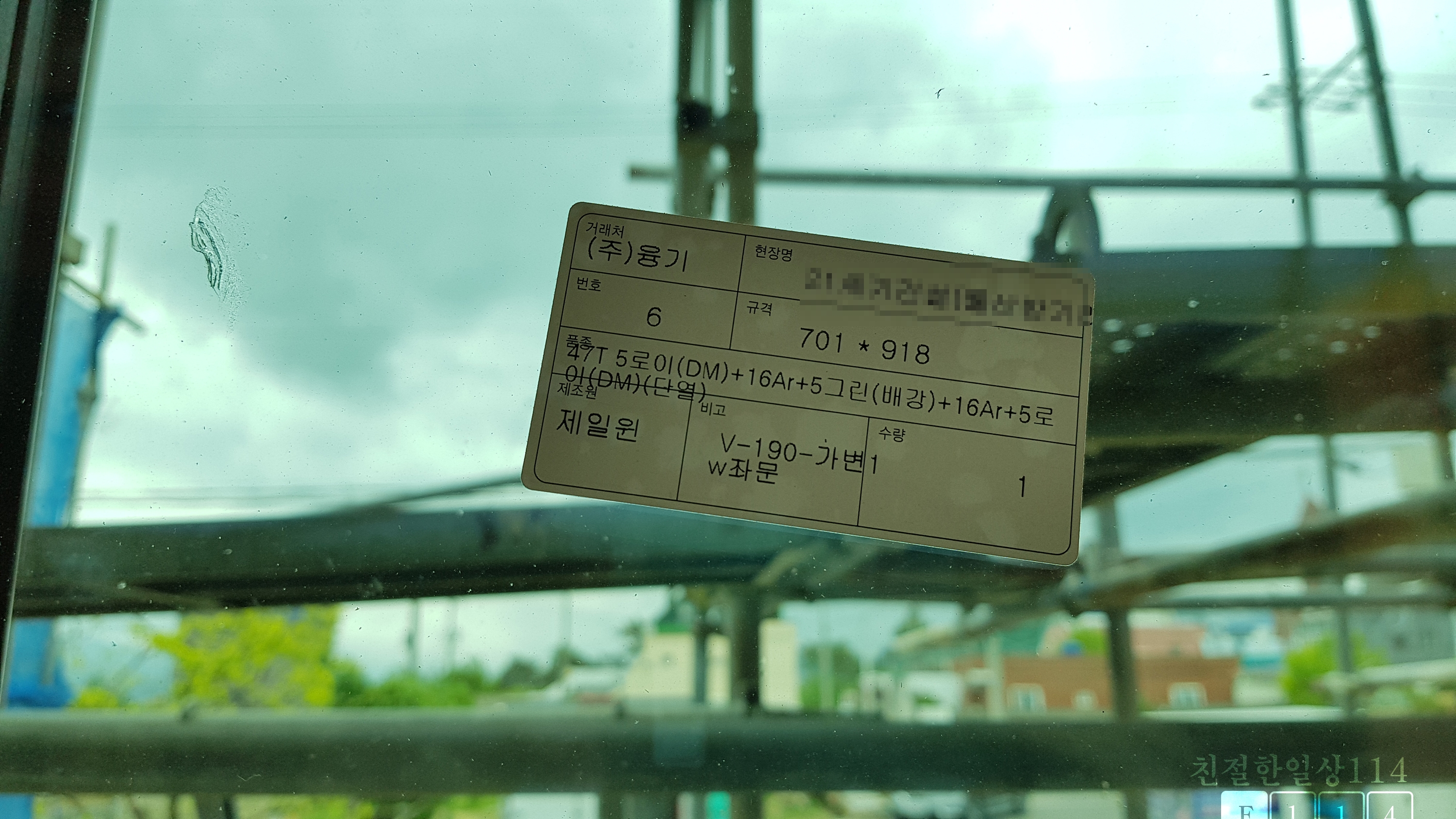 공사조건 & 마감사양표에 나와있는 제품이 맞는지 현장에 시공된 창문에 붙어있는 스티커와 대조해본다.