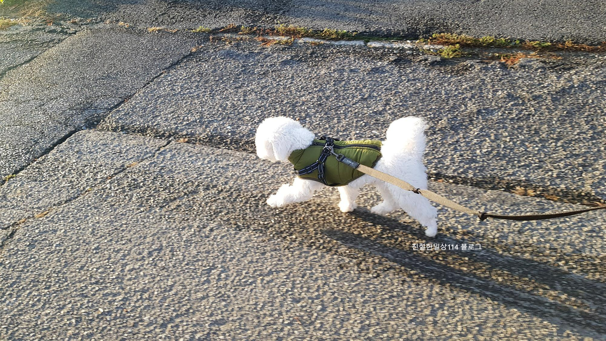 마늘이는 첫 산책을 6차 접종을 마치고 중성화 수술 후 나갔다. 강아지 산책, 강아지 산책 가능 시기 (비숑마늘 산책맛을 알다.)