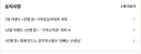 강주학교캠프에서 달별로 진행하는 프로그램을 공지사항으로 올려둔것을 볼 수 있다.