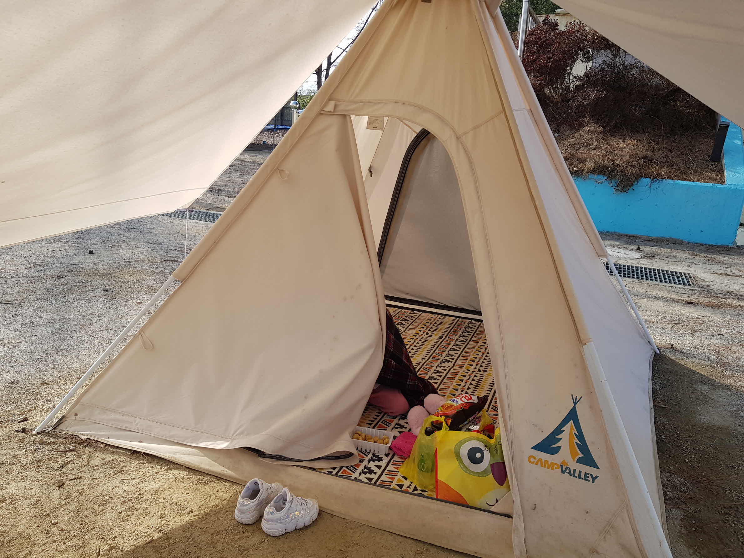 이번에 예약한 23번 텐트이다. 텐트 바로 뒤쪽으로 보이는 하얀색 건물에 화장실과 세척실이 있어서 거리가 가까워서 이쪽을 예약했다.