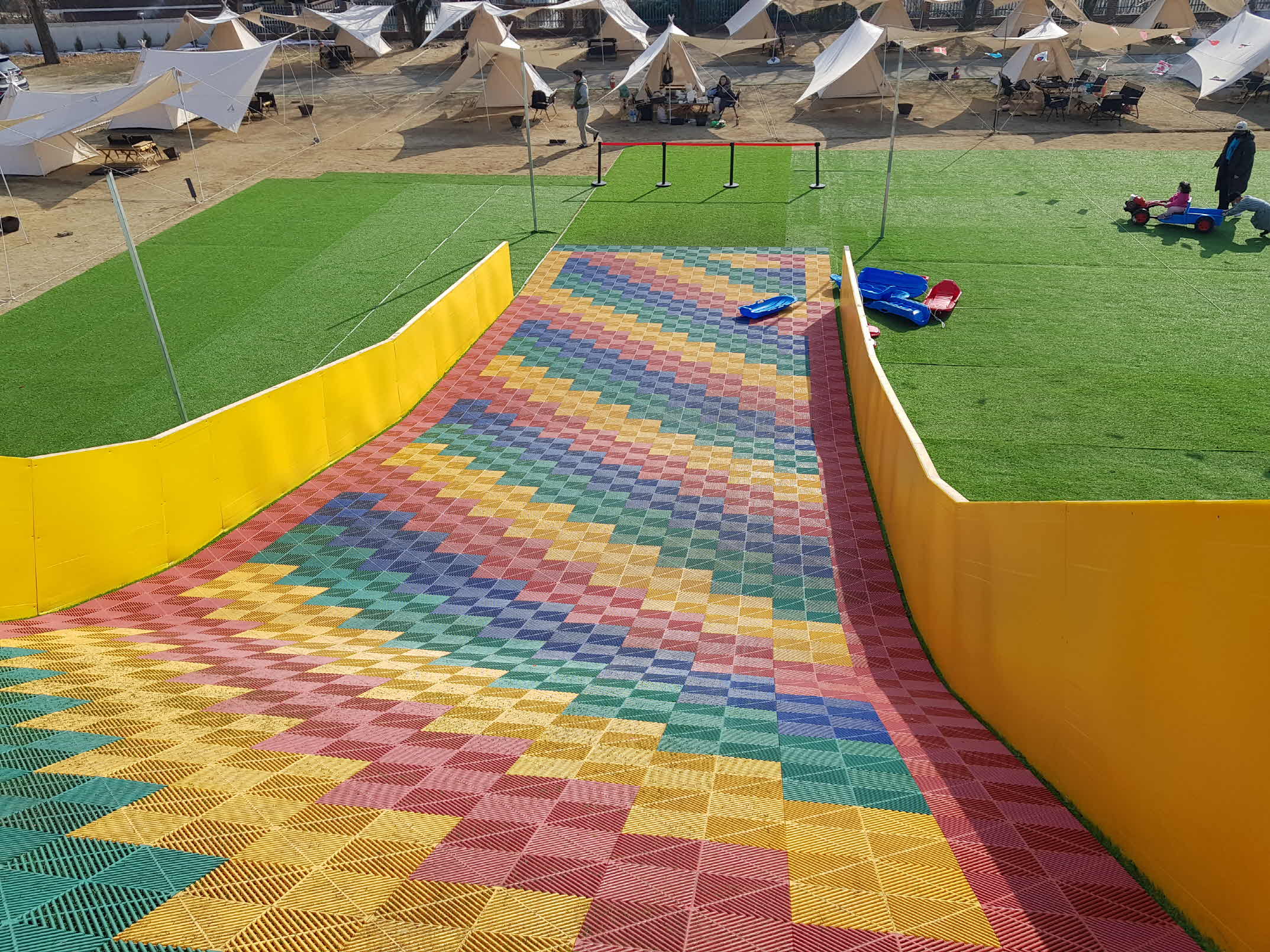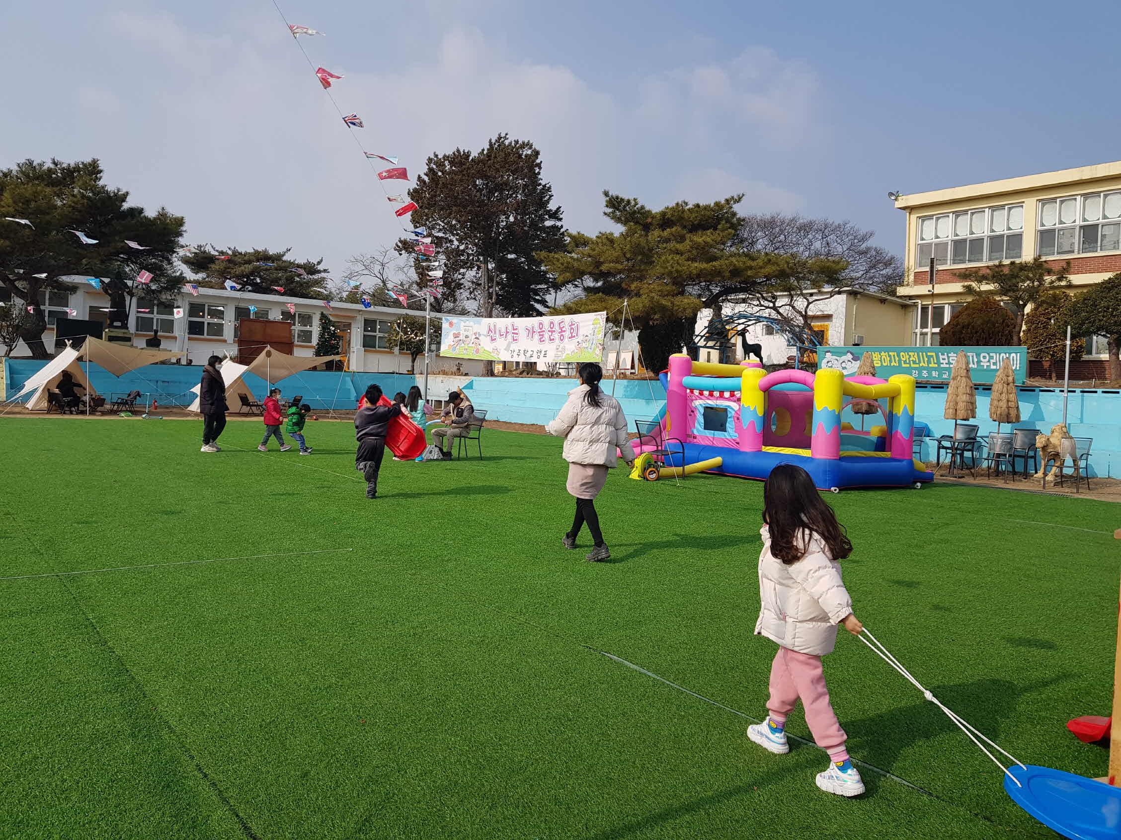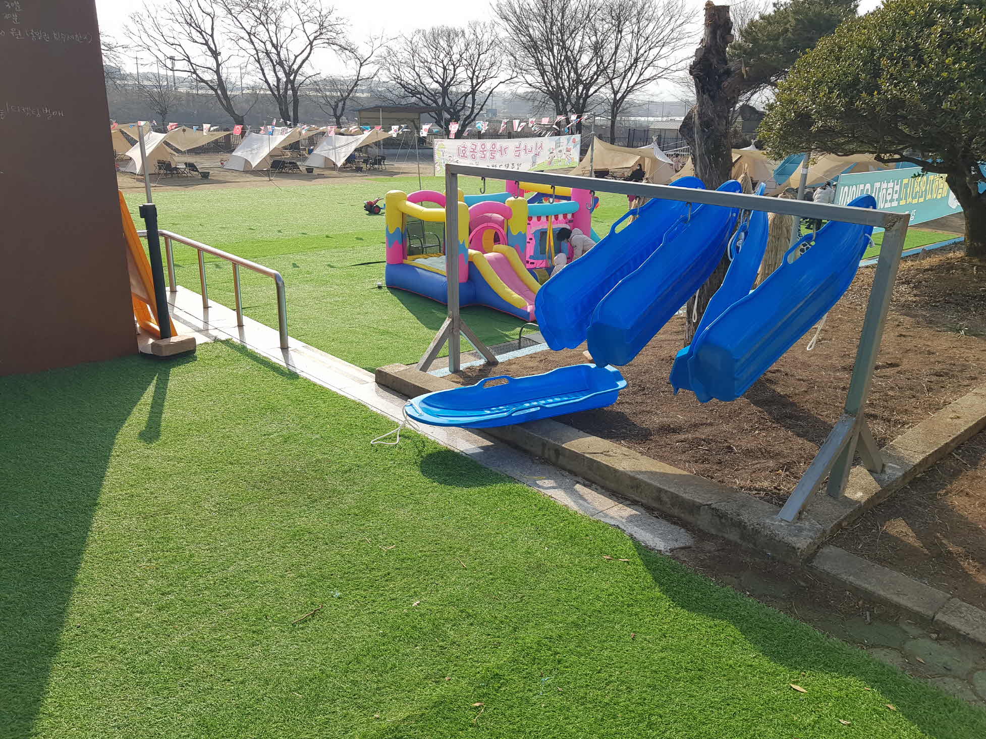 운동장에는 4계절 썰매장을 중심으로 인조잔디가 드넓게 깔려있다.