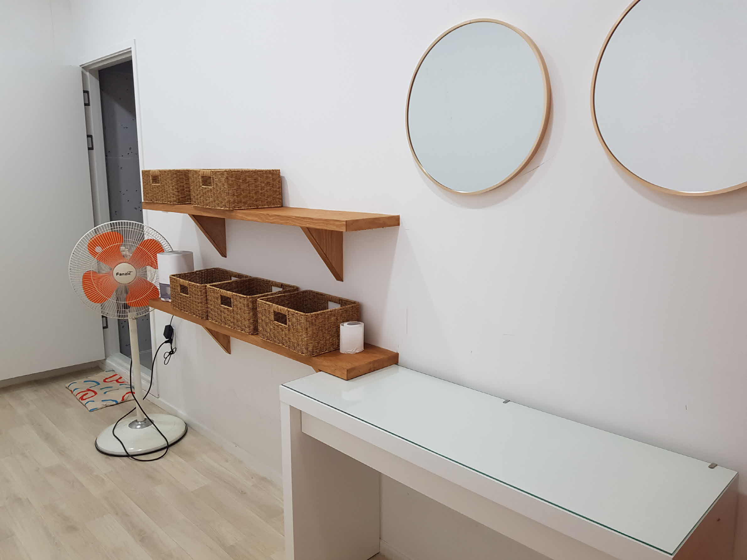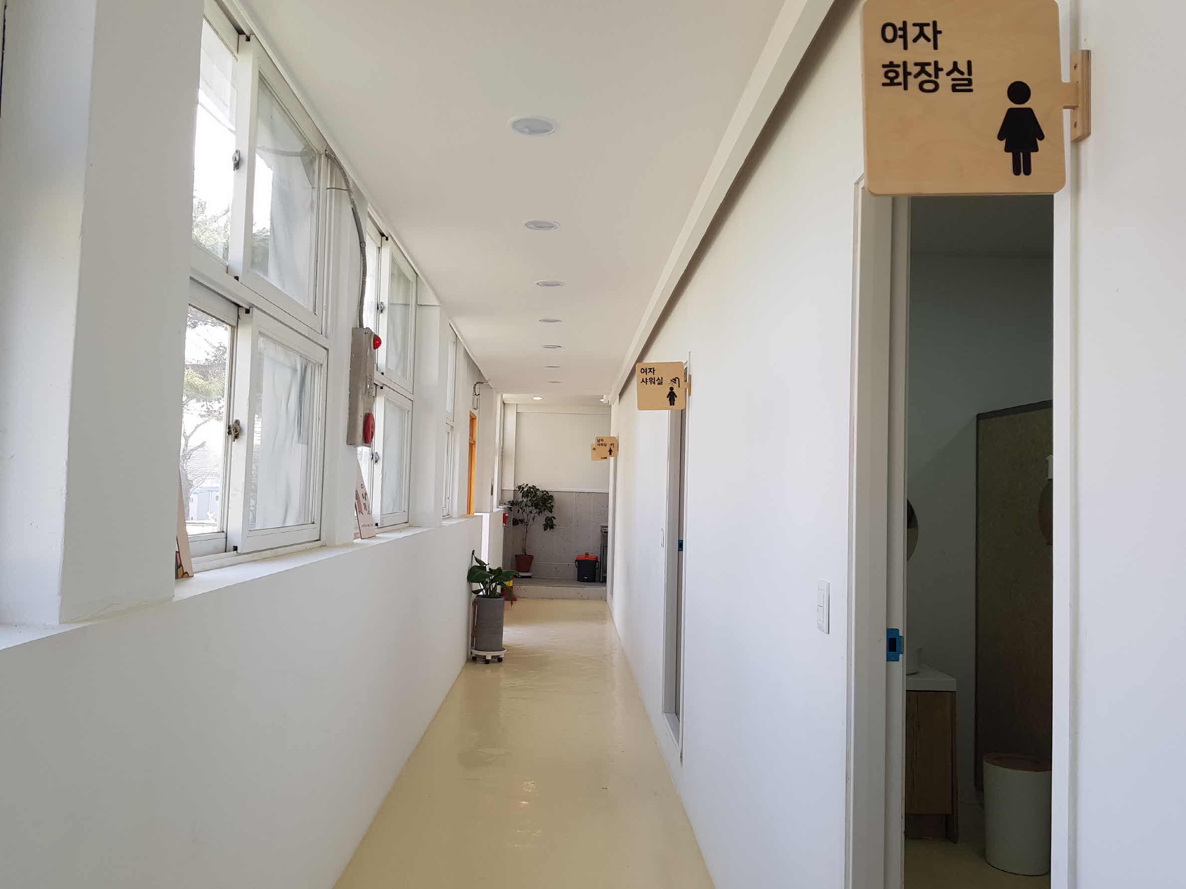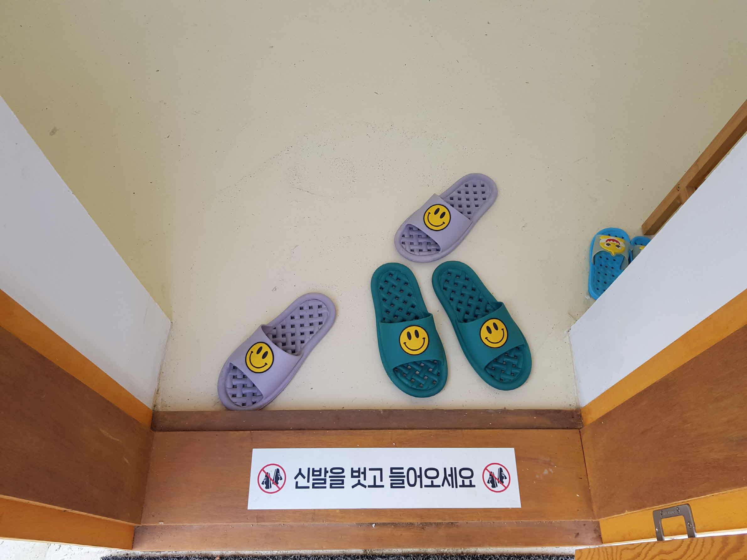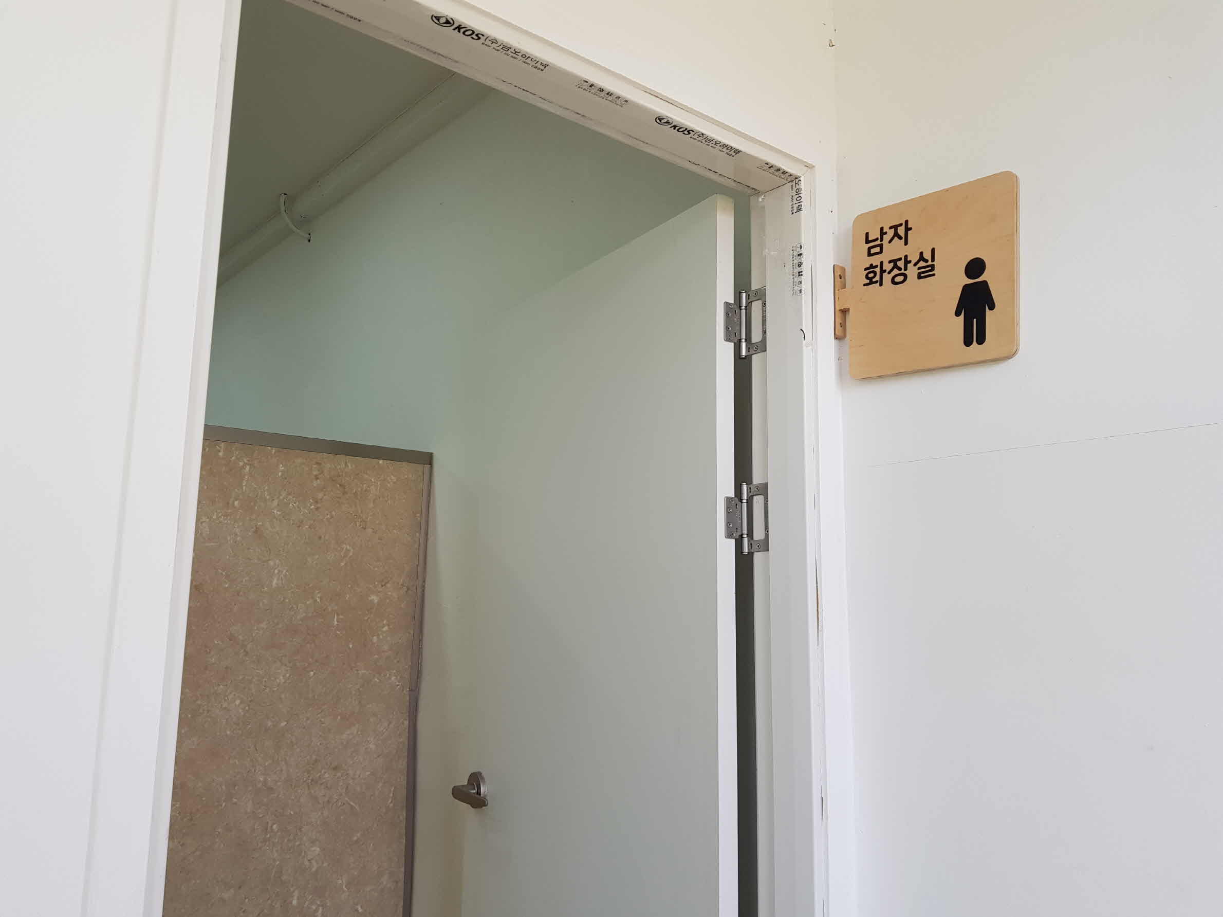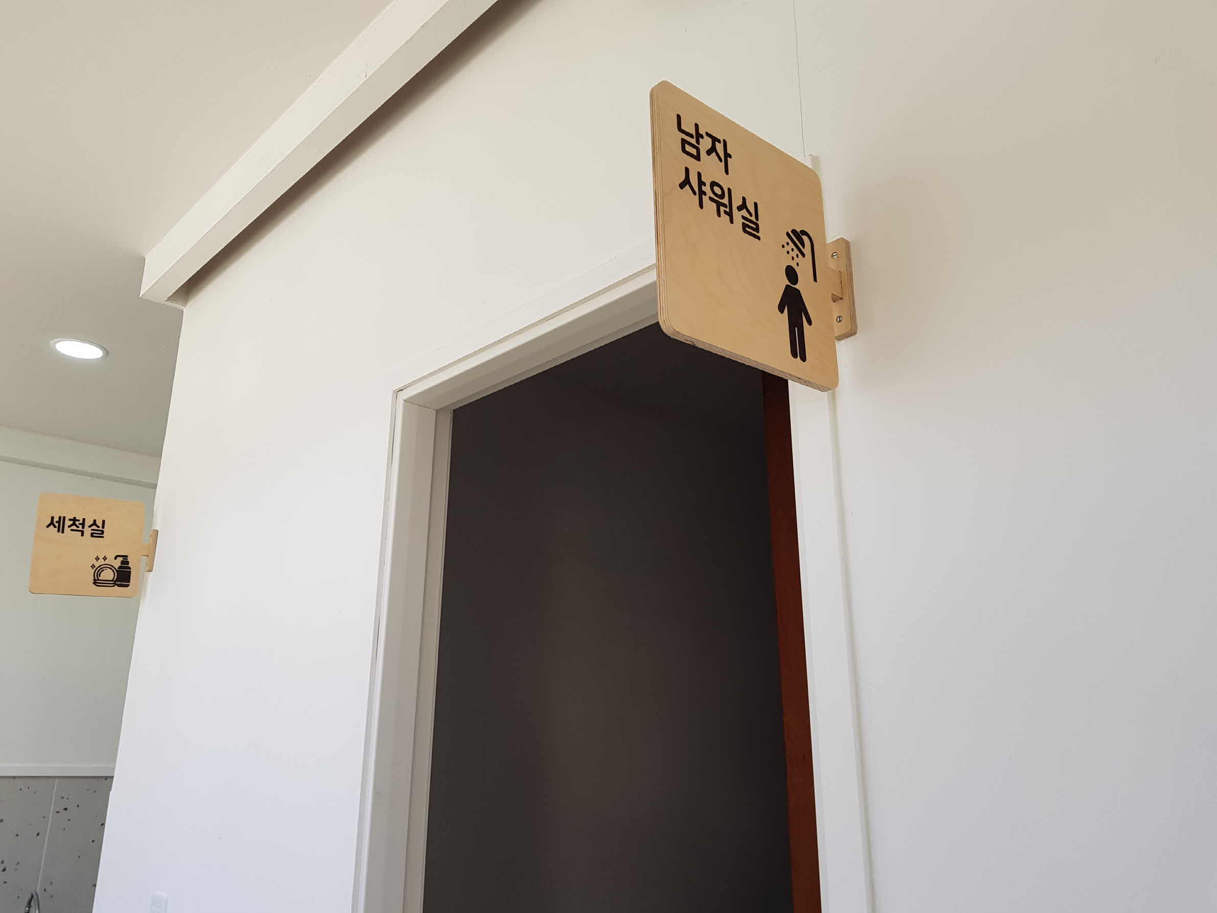 이곳에는 화장실과 그릇을 씻을 수 있는 세척실, 샤워실이 있고 들어가기 위해서는 신발을 벗고 실내화로 갈아 신어야 한다.
