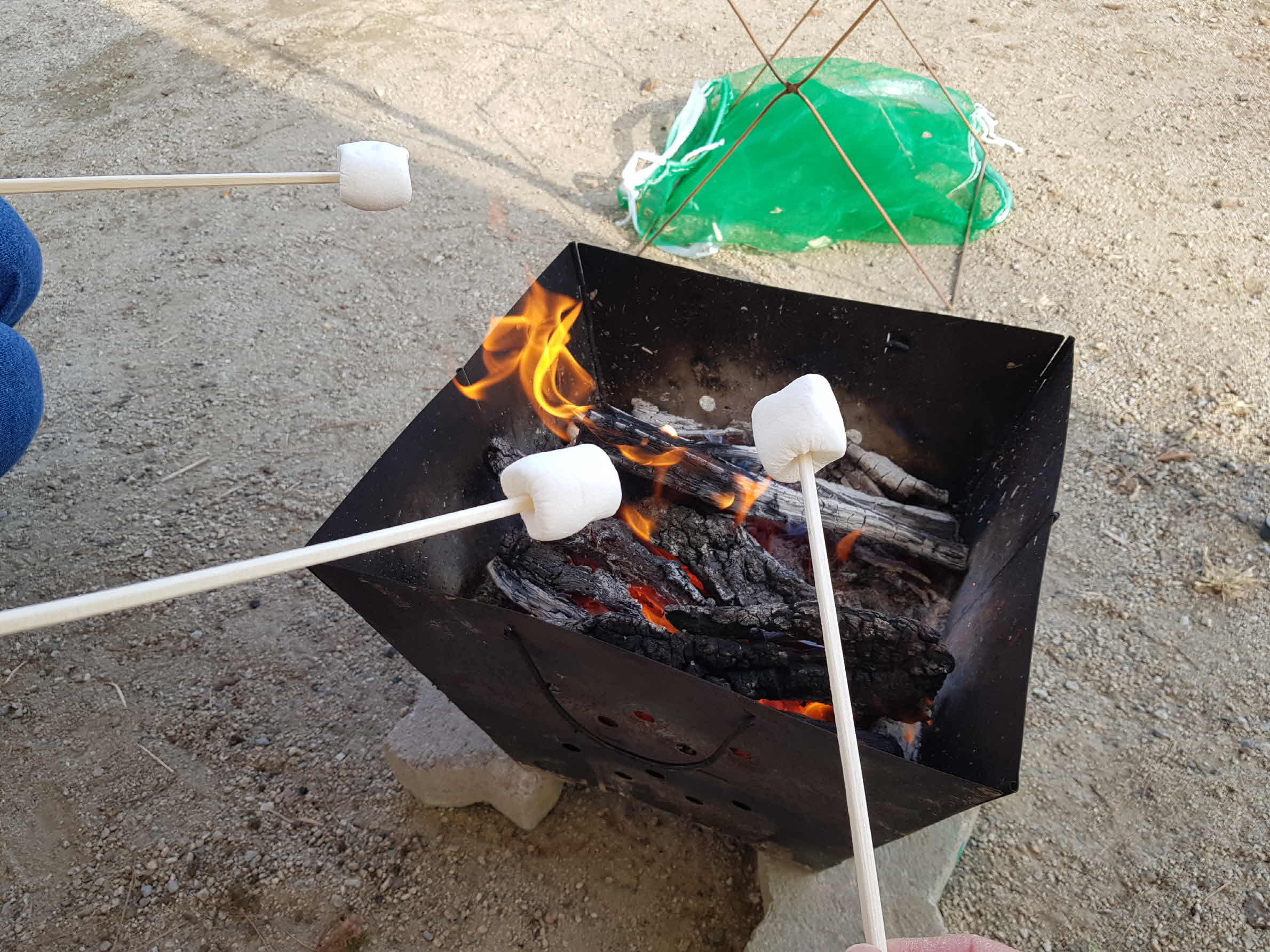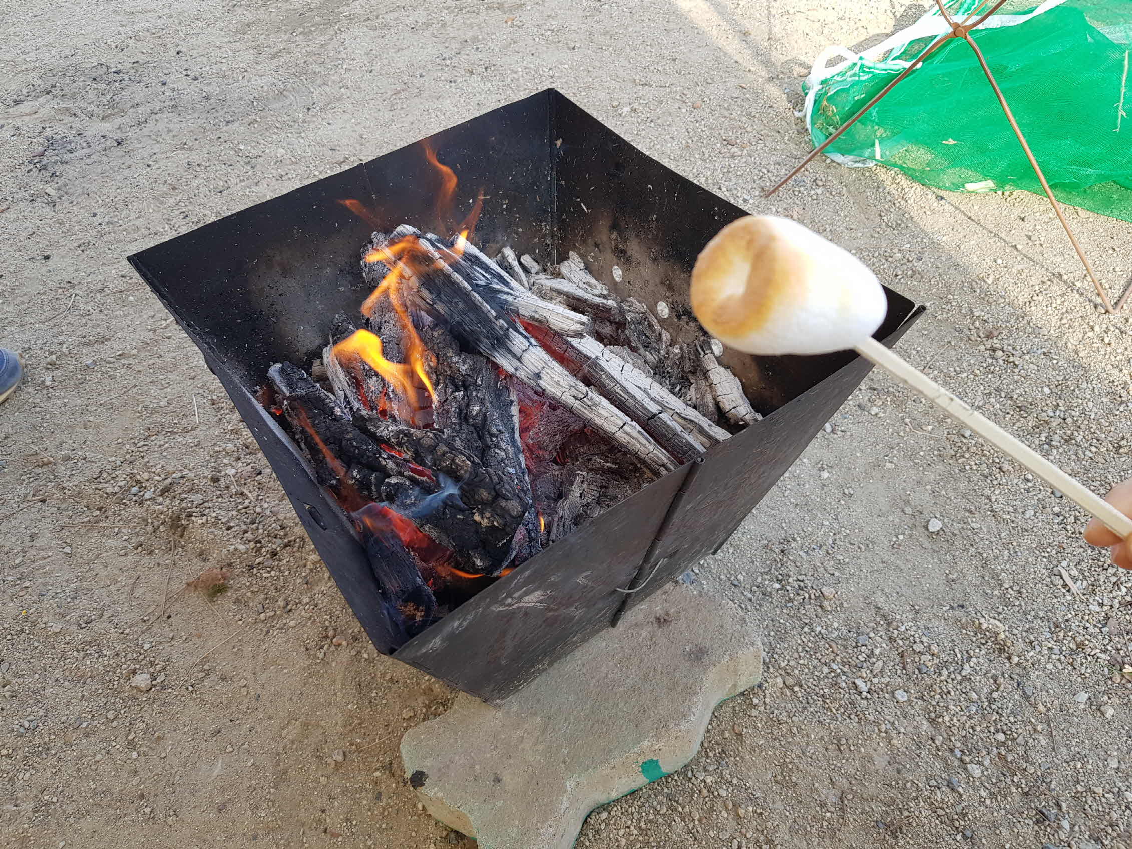 시설물을 돌아보고 텐트로 돌아와 라면을 먹은 뒤 마시멜로를 구워 먹는다.