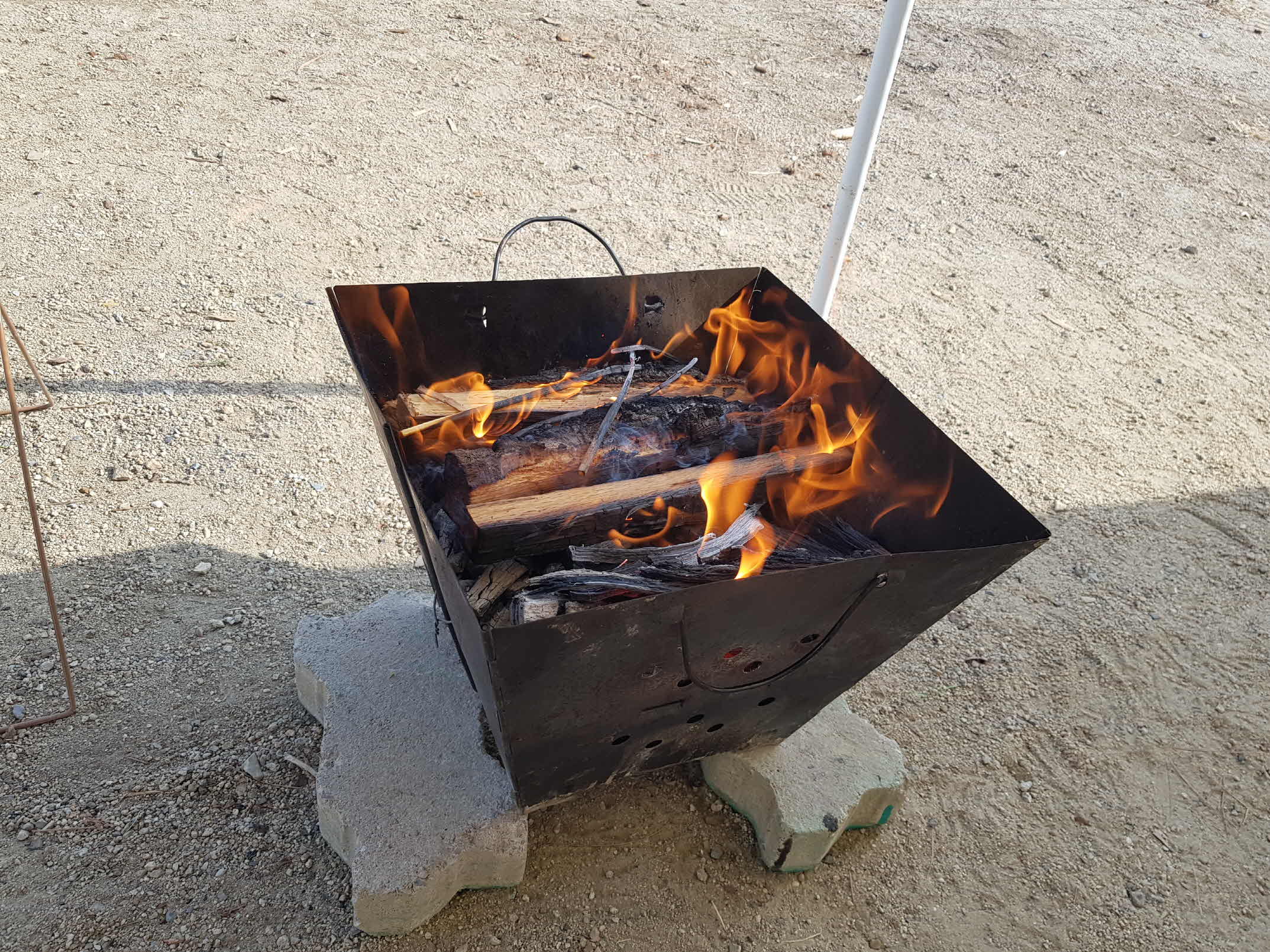 이때가 불을 피우고 2시간 정도 되었을때인데 망에 있던 장작을 다 썼다.