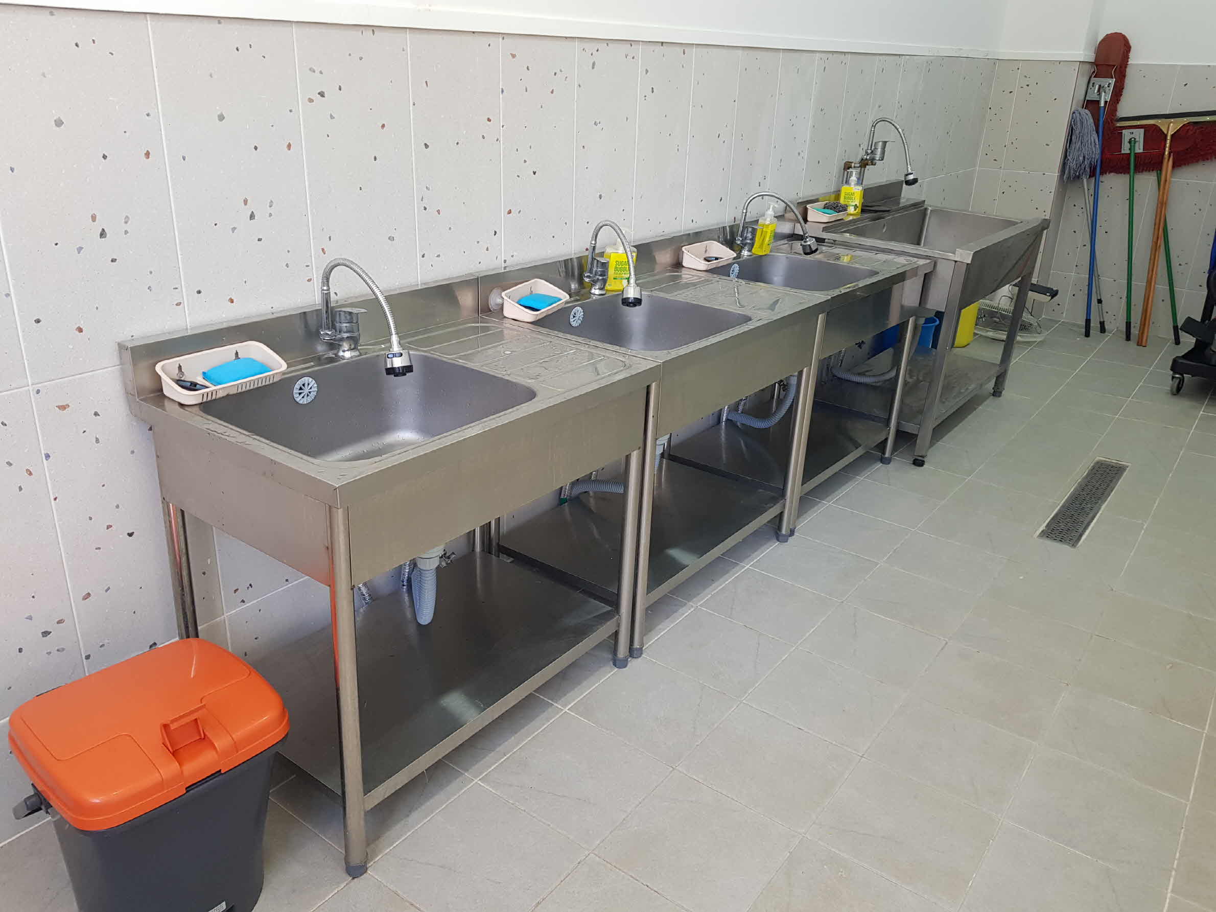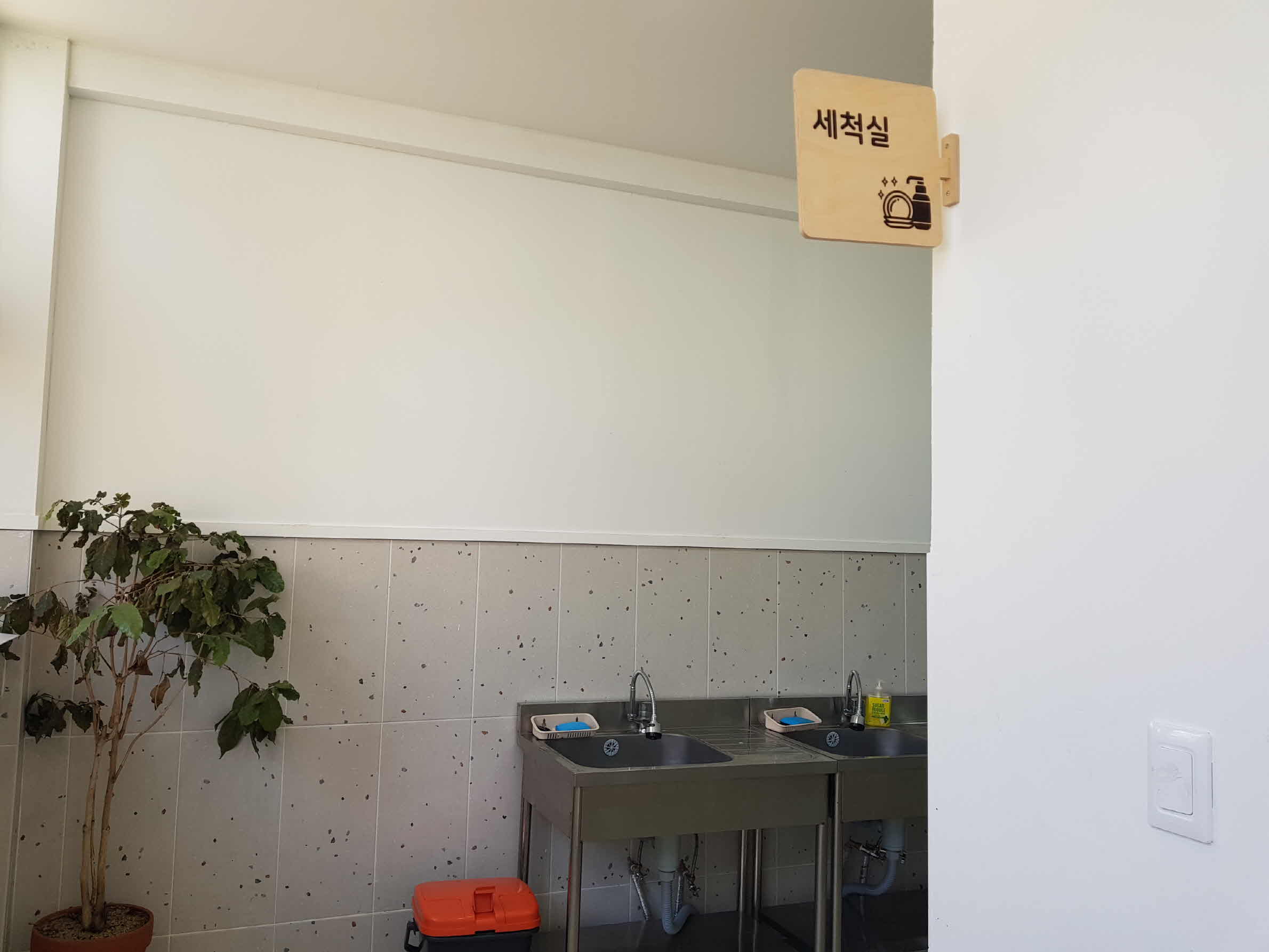 세척실로 상당히 깔끔하다. 음식물 쓰레기도 이곳에서 그릇을 씻으며 버릴 수 있다.