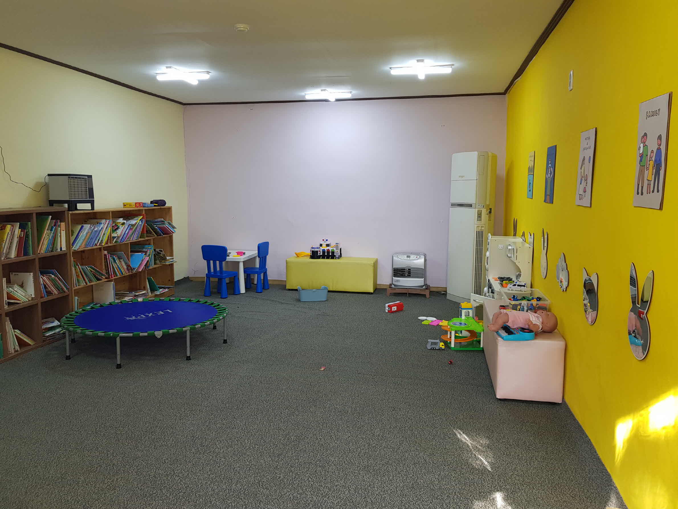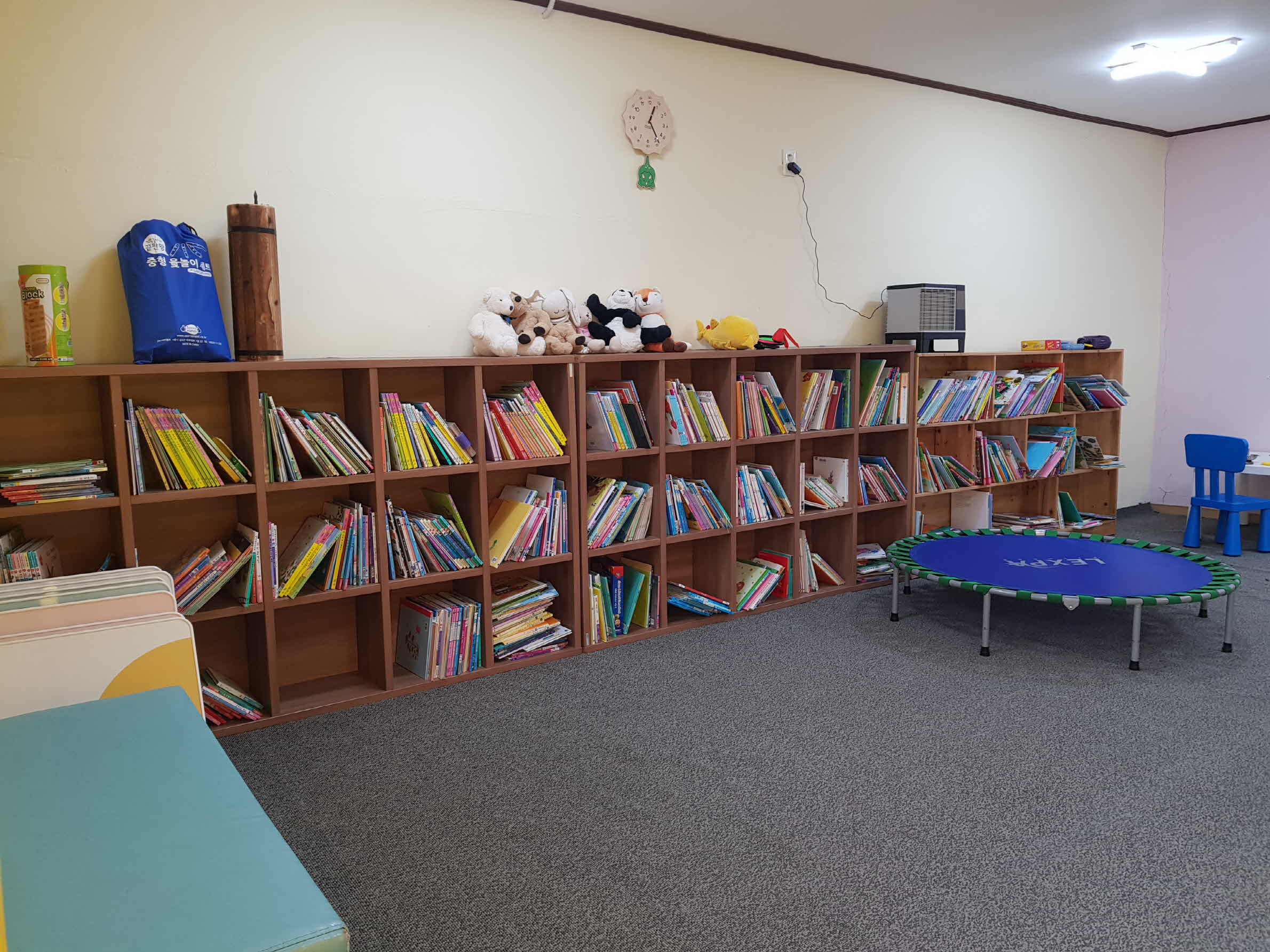 아이들이 읽을 수 있는 동화책들과 주방놀이, 인형 등의 장난감들이 있다.