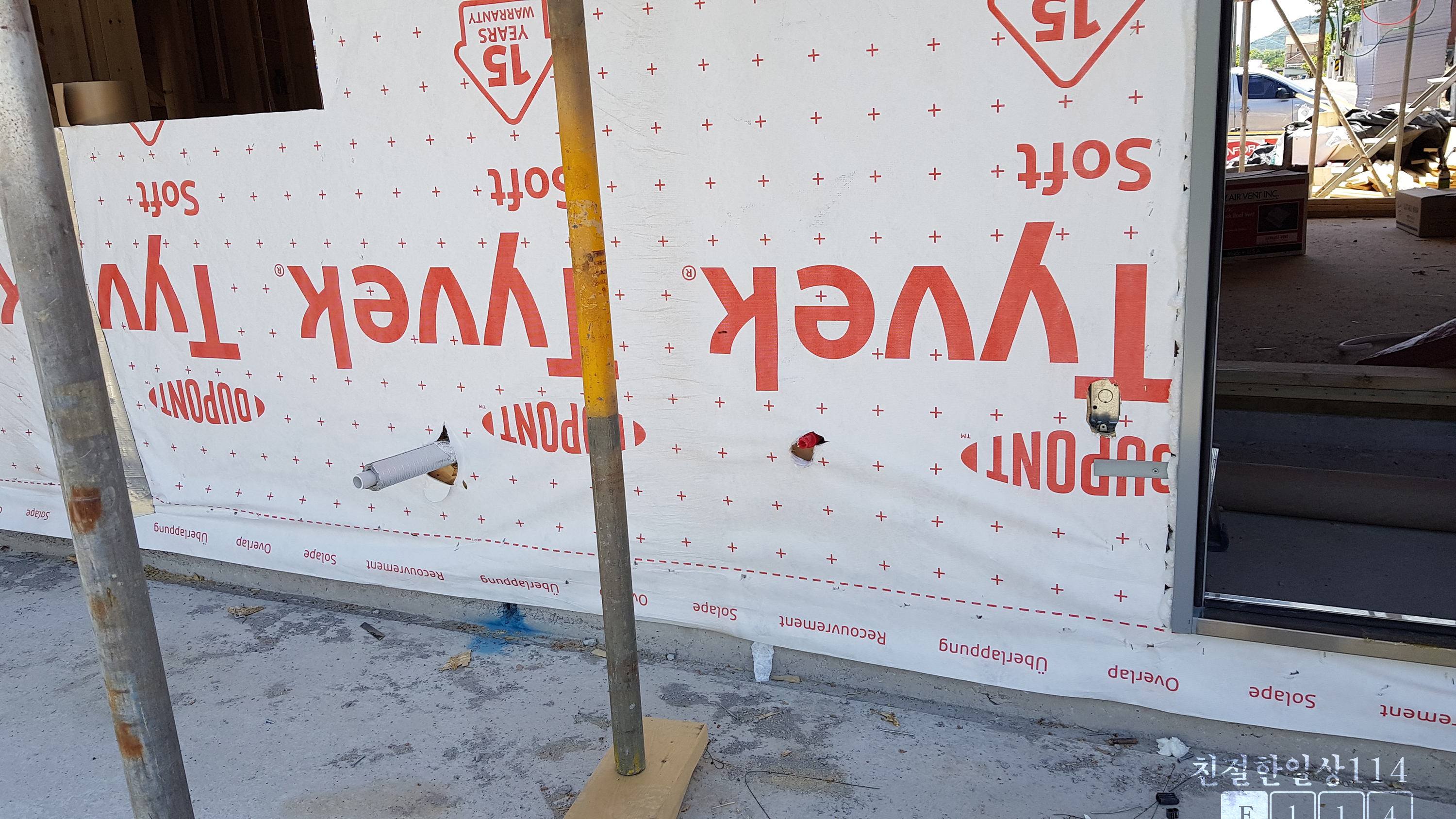 골조공사가 끝나갈 무렵이면 집의 전체적인 모양이 드러나게 된다. 기울어진 모양의 지붕에 거실과 주방의 층고를 높인 오픈천장이기에 산을 연상시키는 듯한 외형이다. 골조공사는 약 10일간 이어지며 골조공사가 끝나갈 무렵인 8일째 전기입선공사와 에어컨 배관공사, CCTV 배선공사가 같이 진행된다. 전기배선과 에어컨 배관/배선이 노출되어 보이지 않도록 벽체 내부로 넣기 위해서는 단열재와 석고보드 공사 전으로 일정을 잡아야한다. 특히 천고가 높은 오픈천장에다가 천장이 평평하지 않고 기울어진 모양은 천장에 매립해야하는 시스템 에어컨 자리 잡기가 까다롭다. 때문에 설계때 에어컨 자리를 특정하지 못 했고 시공때 현장에서 풀어나가기로 했다. 골조공사 끝날 무렵 에어컨 업체와 시공사 골조팀이 함께 미팅하며 진행했던 시스템 에어컨 위치 선정과 배관 설치 과정을 사진과 함께 남겨본다.