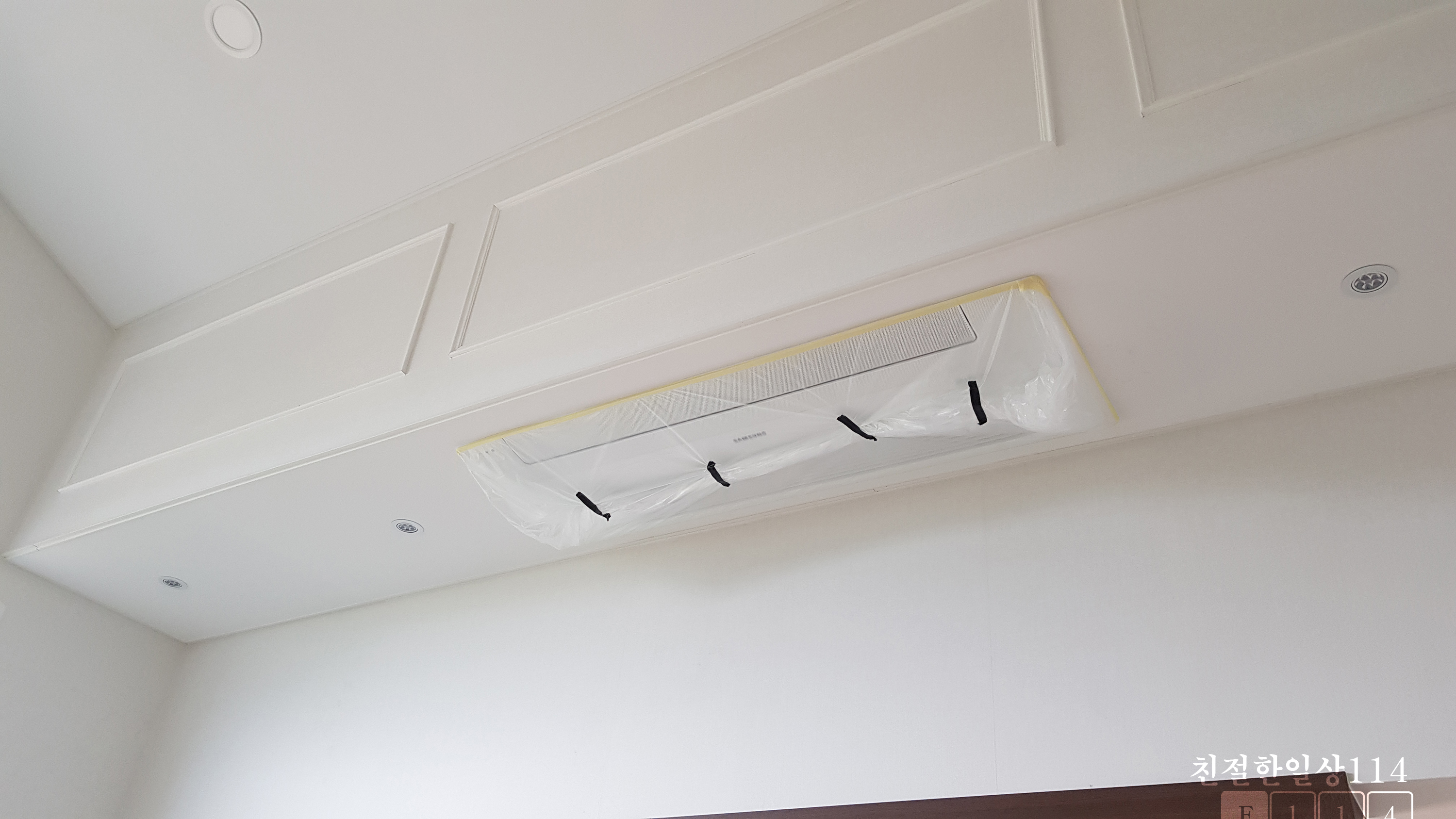 거실 에어컨 설치전으로 거실 천장의 가장 낮은 쪽에 설치할 계획이다.