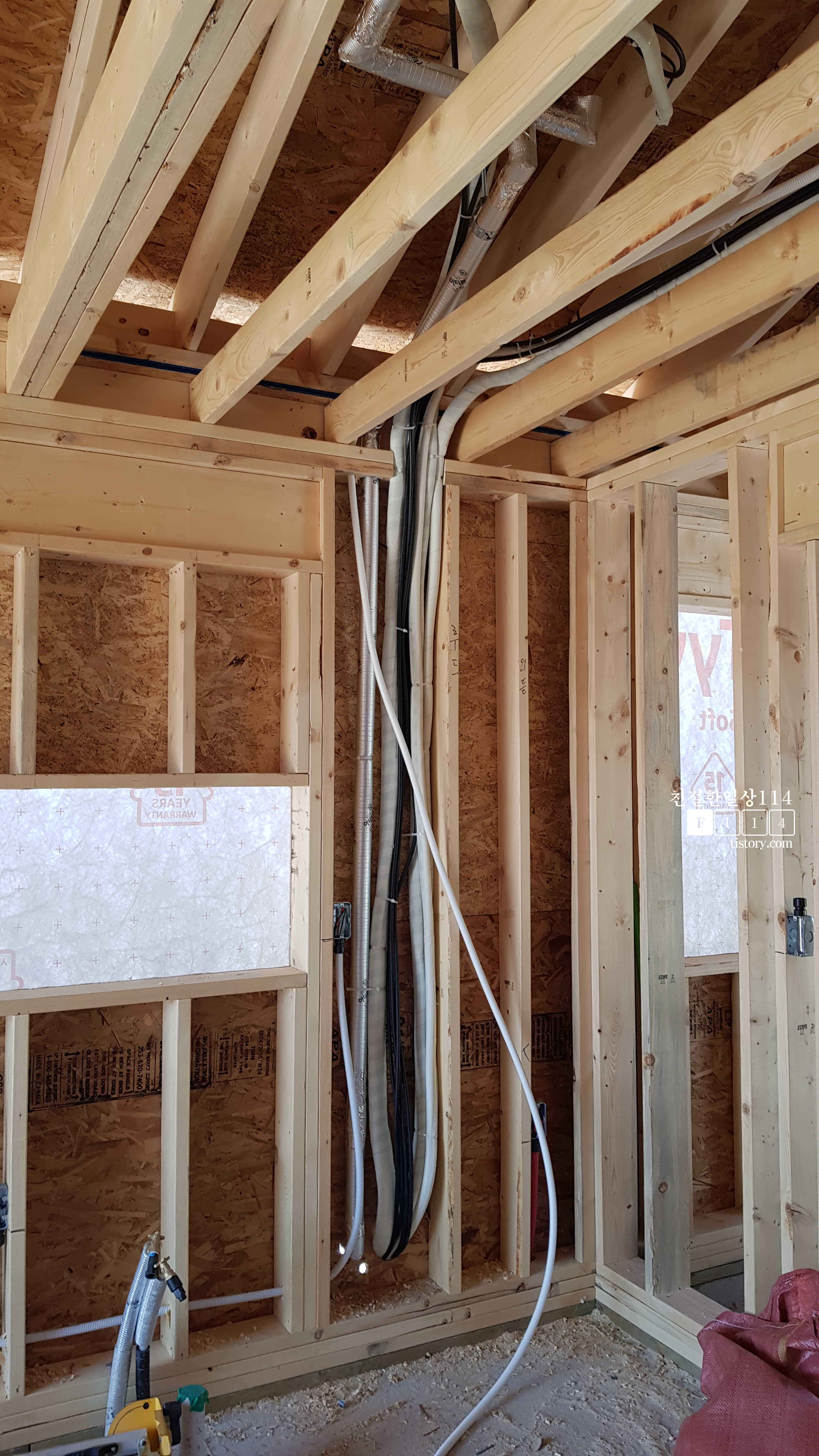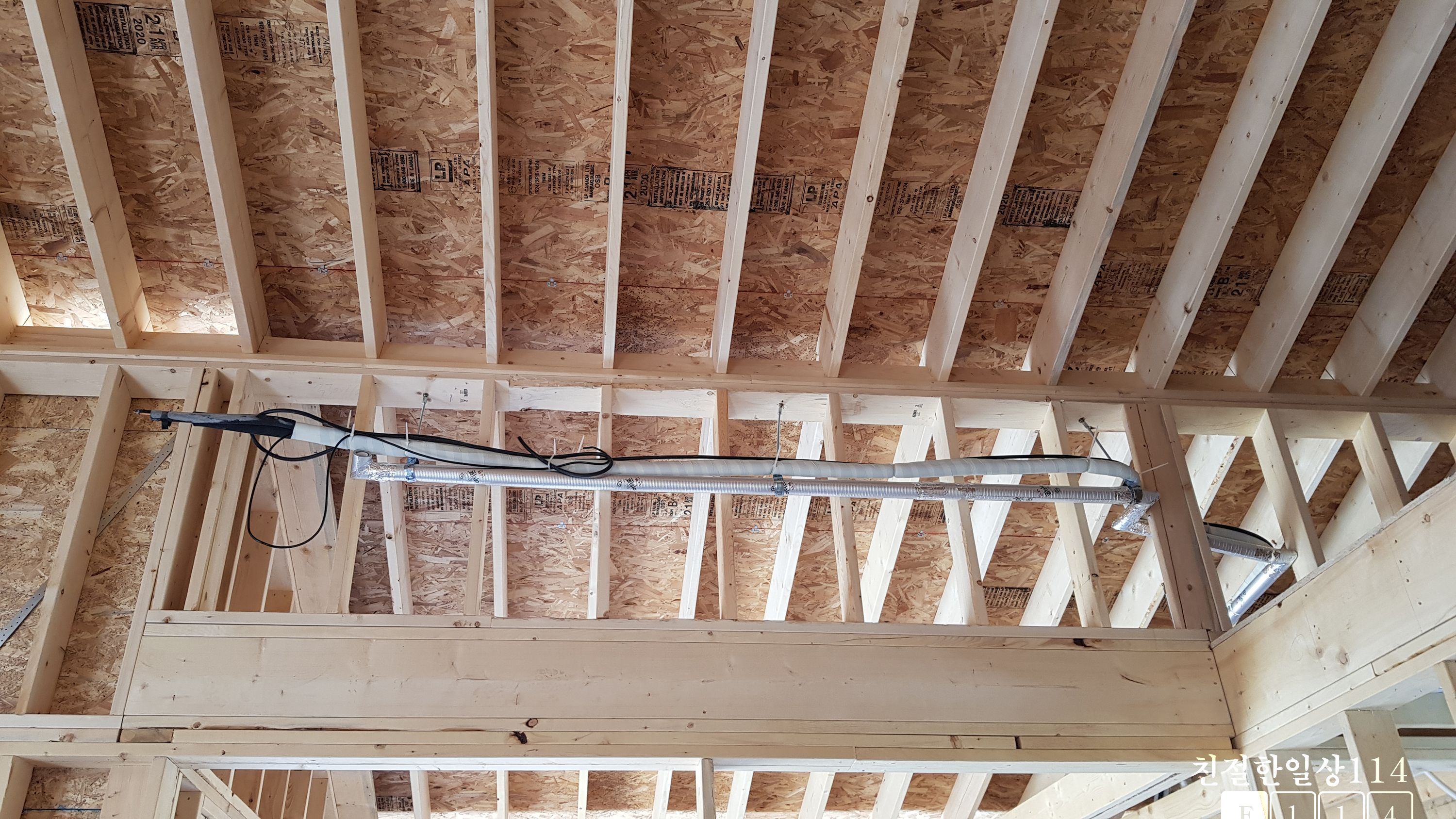 그래도 다락 계단을 올라가는데 머리를 숙이고 올라가는건 아니지 않은가? 집을 짓는게 편하게 지을 수 있는 집이 아니라 편하게 살 수 있는 것이 목적이지 않은가. 불평을 얘기했던 전기사장은 이후에도 한번 마찰이 있었는데 제대로 짚고 넘어가려다 가족의 만류로 그냥 보내줬다. 이렇게 해서 반대쪽의 높이가 낮은 쪽 천장으로 에어컨 설치를 진행했고 지금까지도 매우 잘 한 결정이었다고 생각한다.