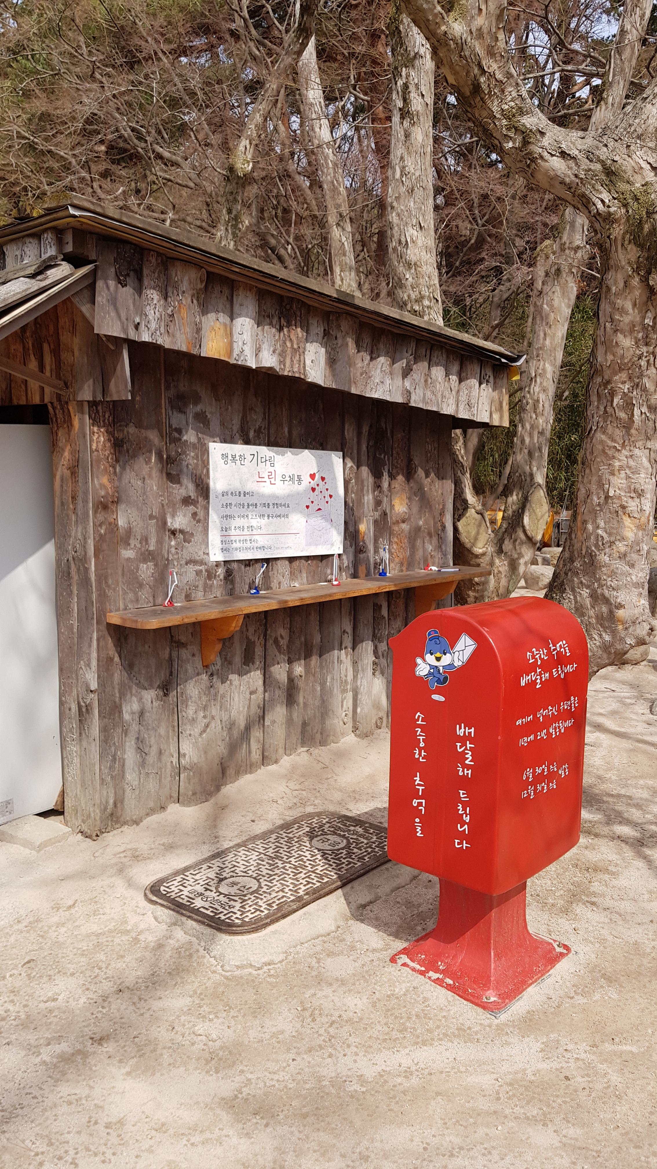조금 들어가다보면 빨간색 우체통이 보인다. 행복기다림 느린 우체통으로 1년에 2번 발송된다. 6월 30일 즈음과 12월 31일 즈음 한번.
