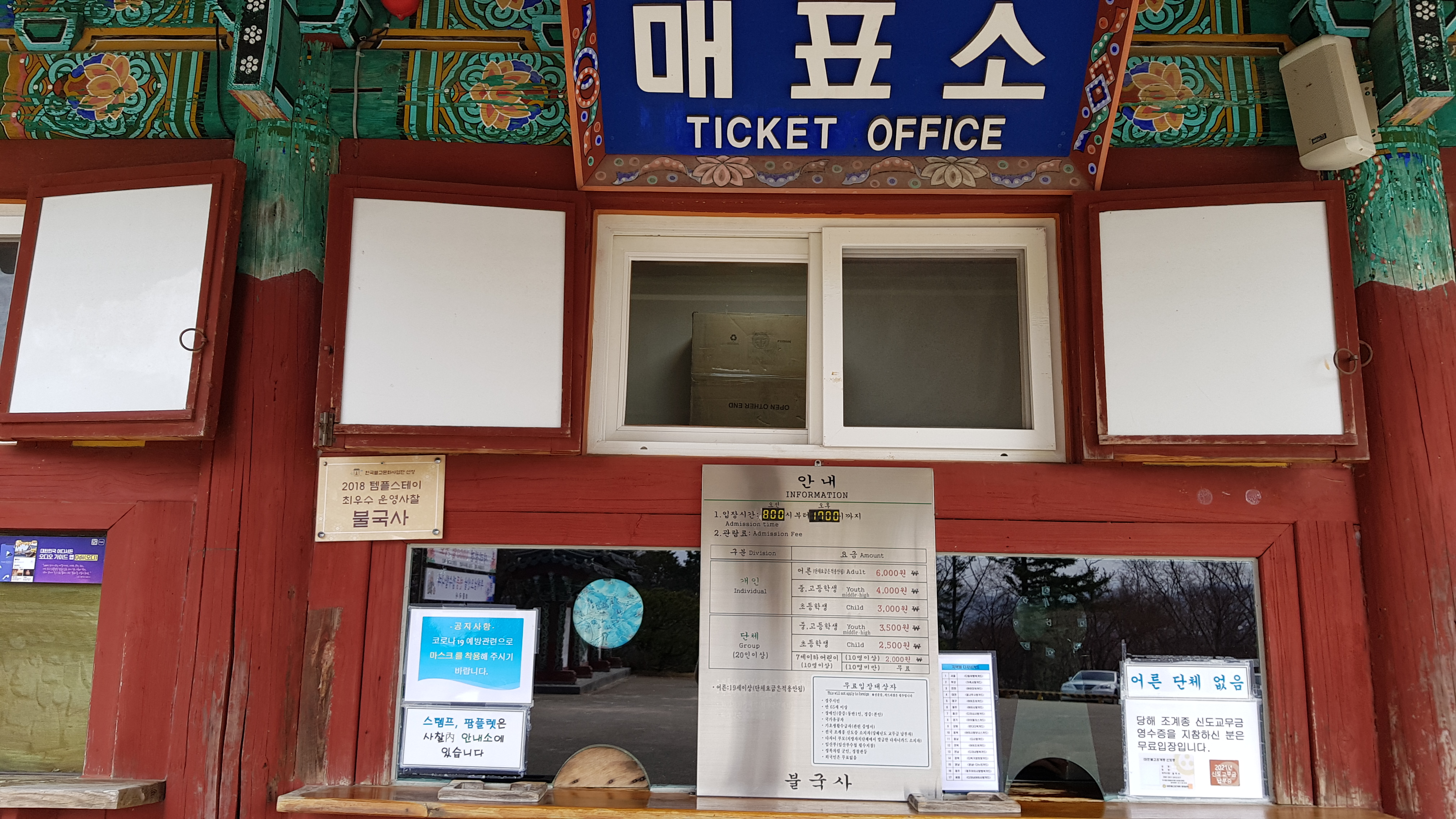 입장료는 성인 6,000원 / 청소년 4,000원 / 어린이 3,000원 / 유치원생까지는 무료다. 얼마전 가봤던 통도사 성인 입장료 3,000원과 비교하면 두배로 입장료가 비싼편이다.