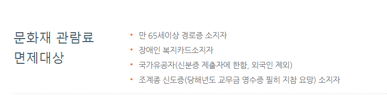 불국사 무료 입장 대상자: 경주시민 / 만 65세 이상 / 장애인 / 국가유공자 / 기초생활수급자 / 다자녀부모 / 임산부