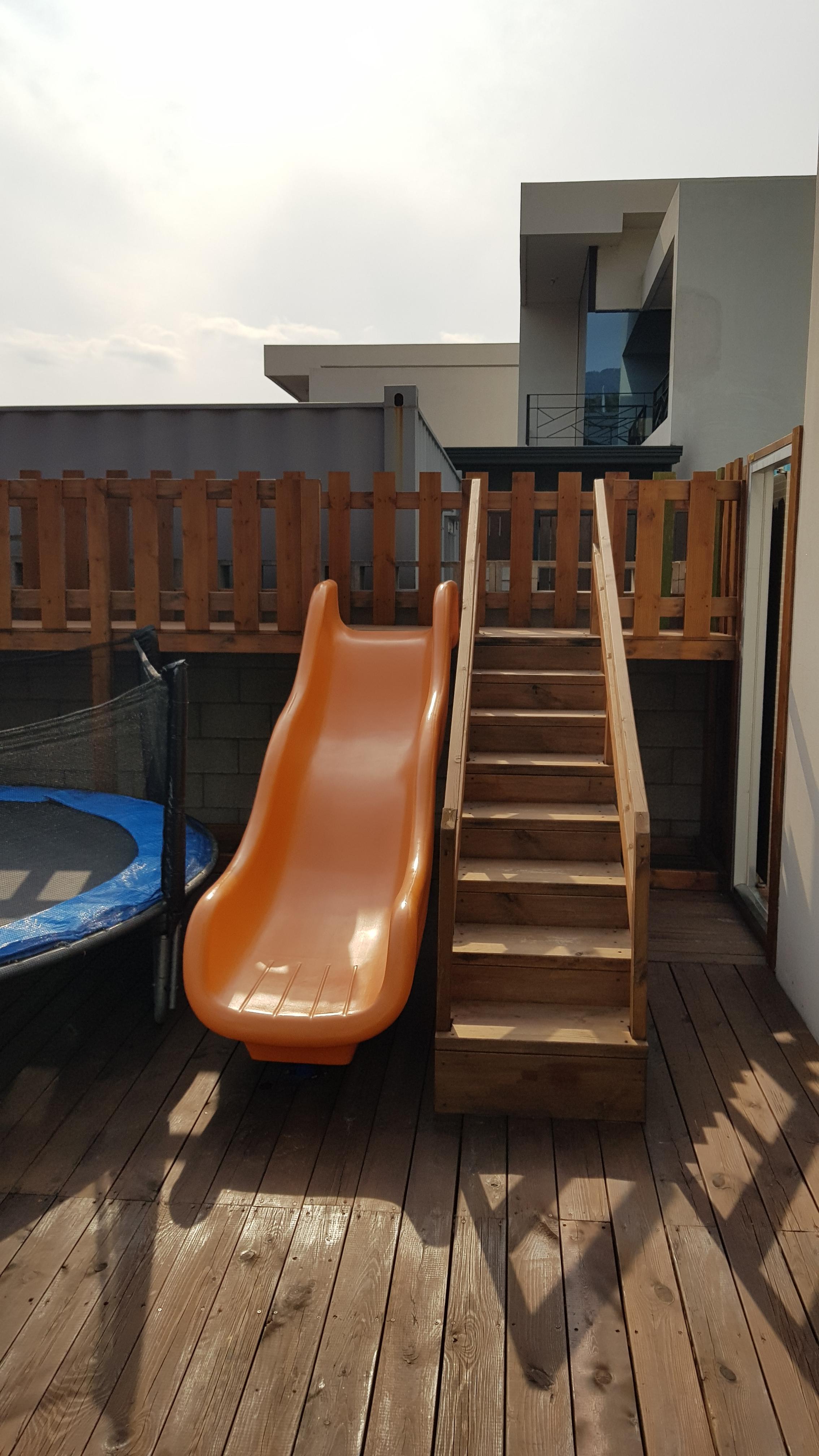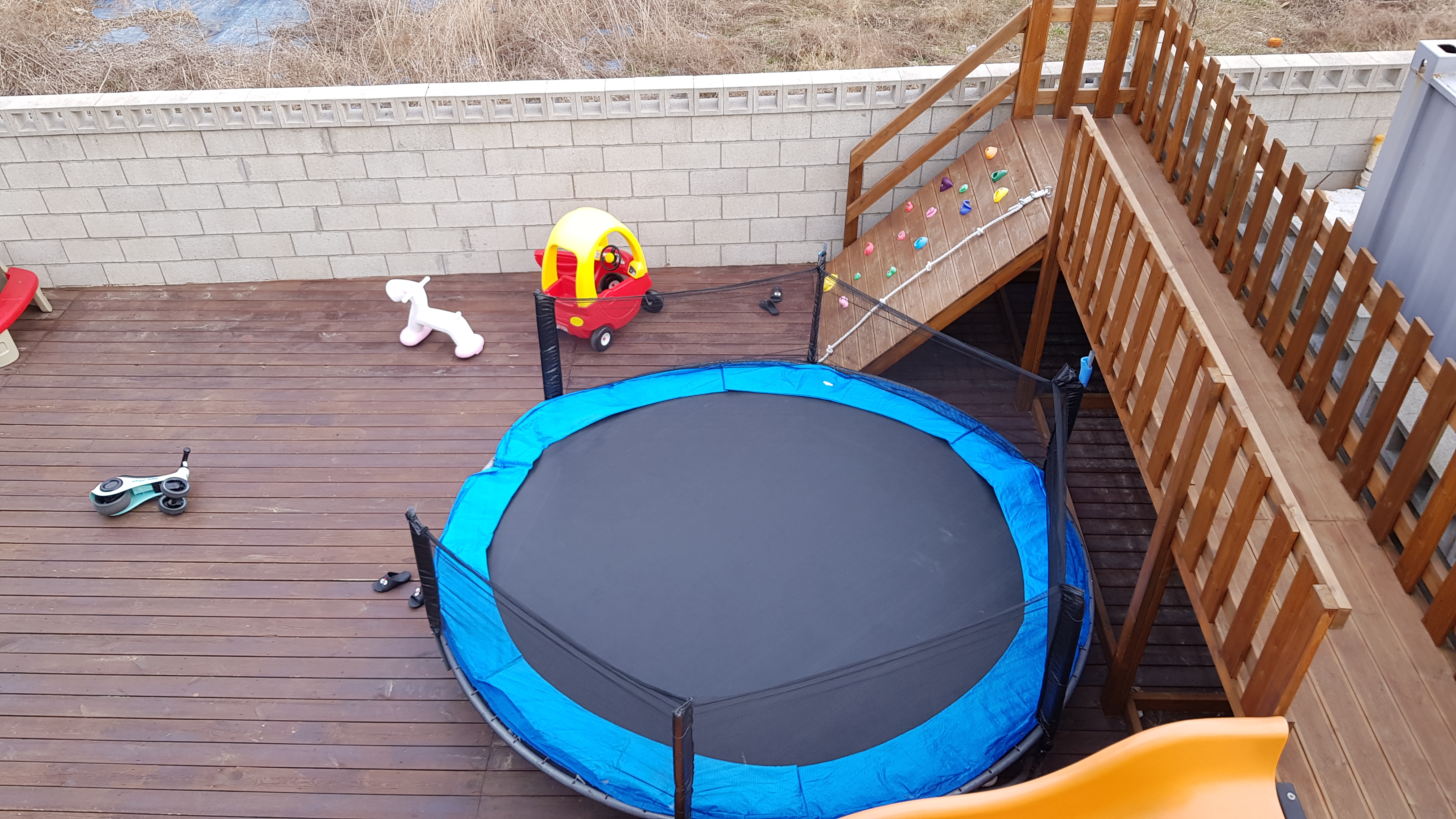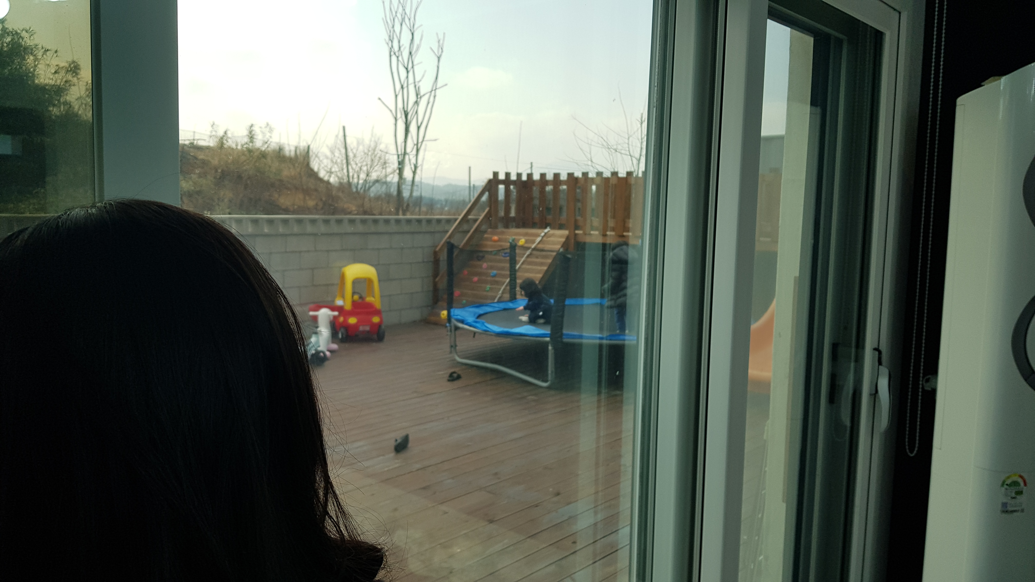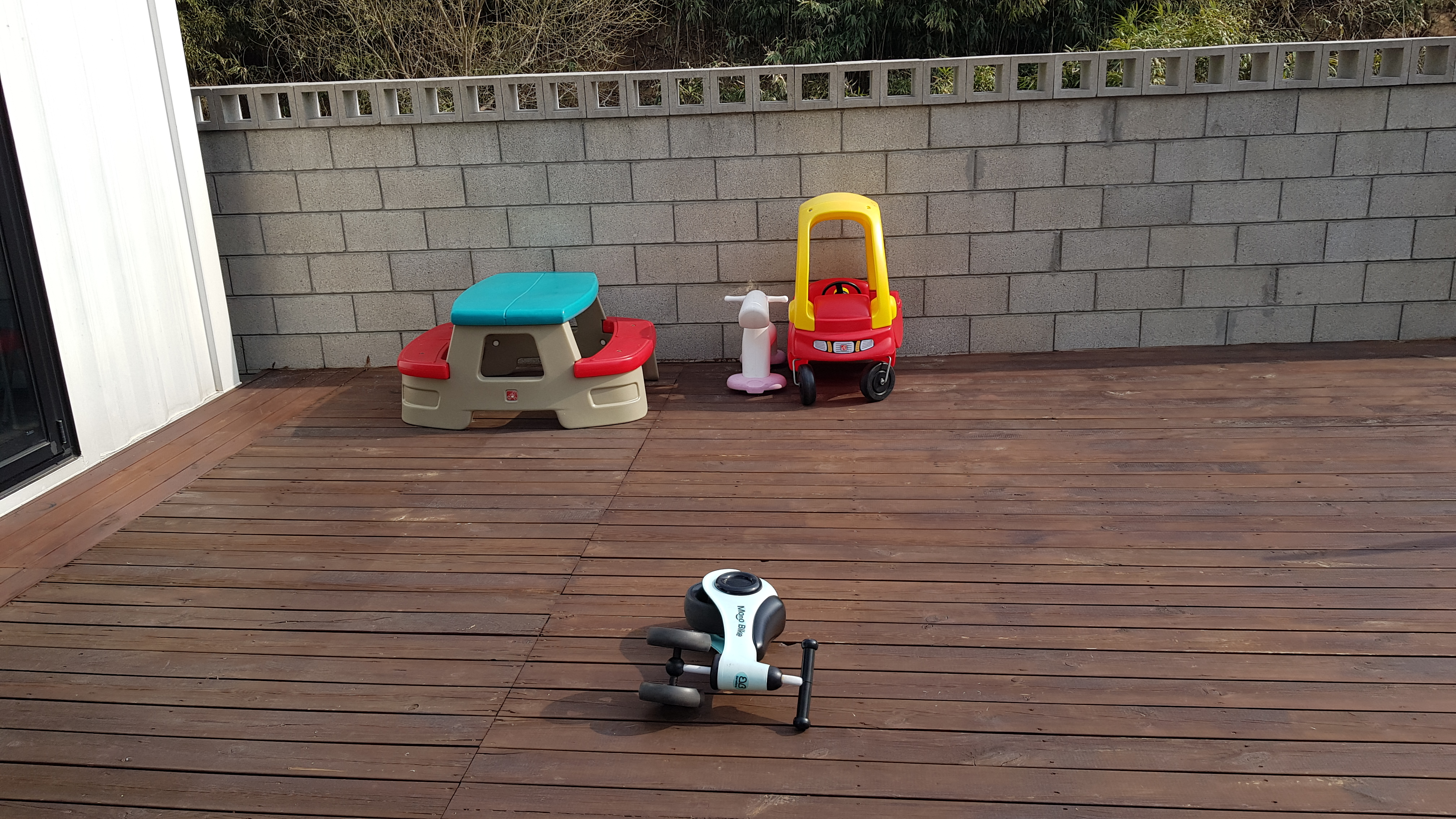 퇴실 준비를 마치고 데크에서 마지막을 불태우는 아이를 보고있다.