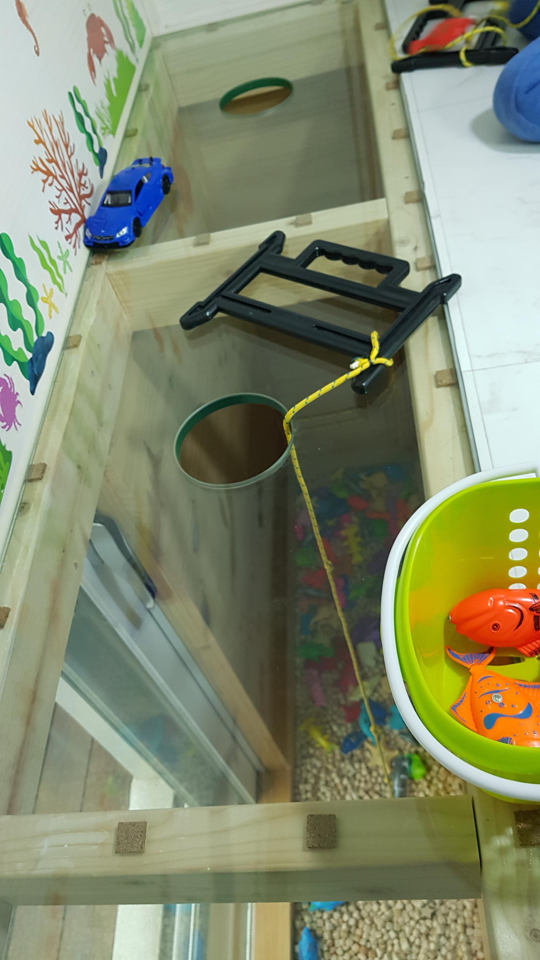 낚시 놀이 한번하면 기본 30분이다. 빨간물고기 5마리 잡아오면 과자하나 고를 수 있게 해주면 더 열심히다.