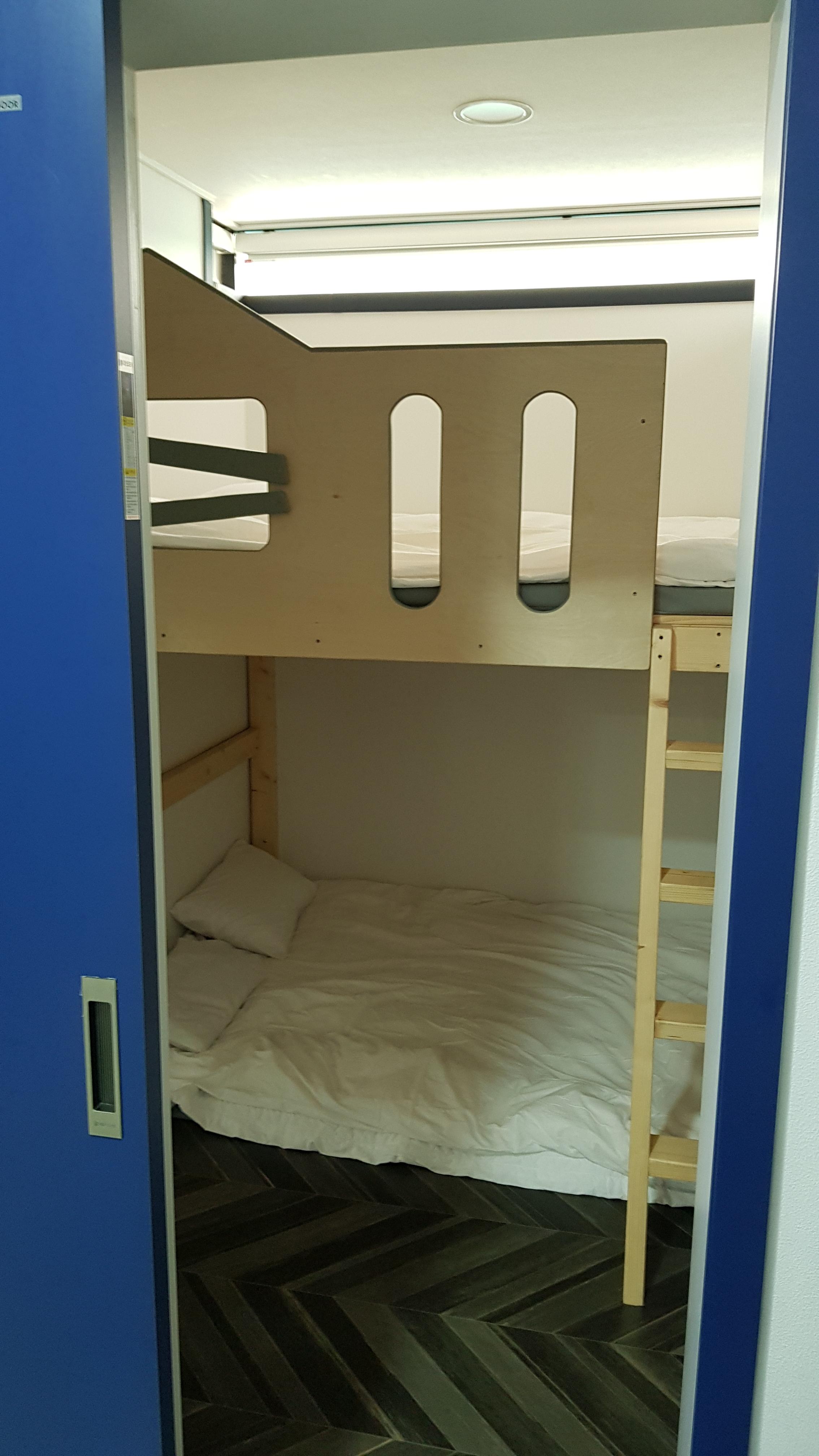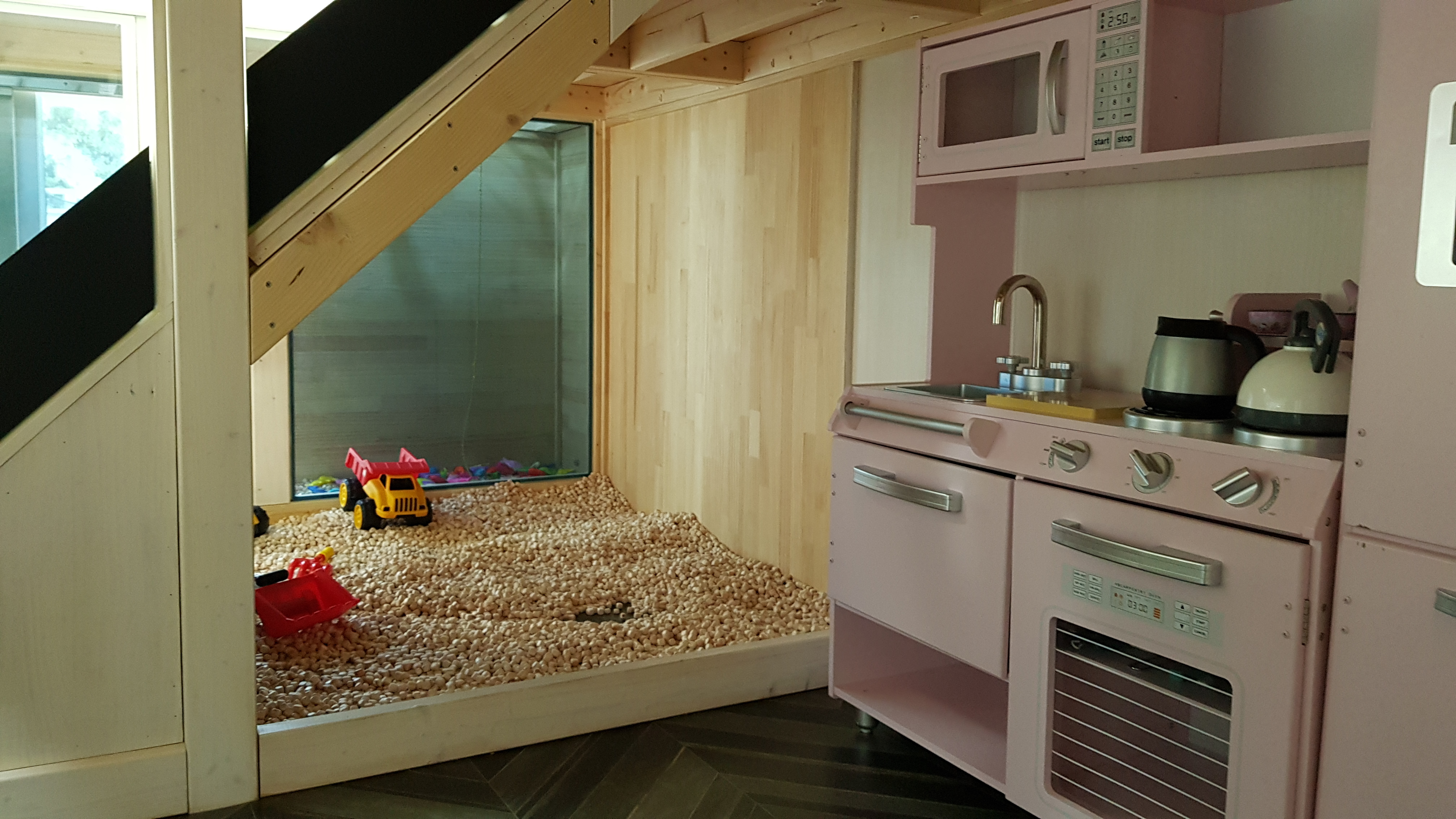 1층 놀이방에서 연결되어있는 침대방. 누워봤는데 머리가 닿지는 않았지만 거의 딱 맞았다. 키큰 어른이 자기에는 약간 불편할듯하다. 2층침대는 나는 불편하니 아이들의 로망과 재미를 위해서 양보해줘야 겠다.