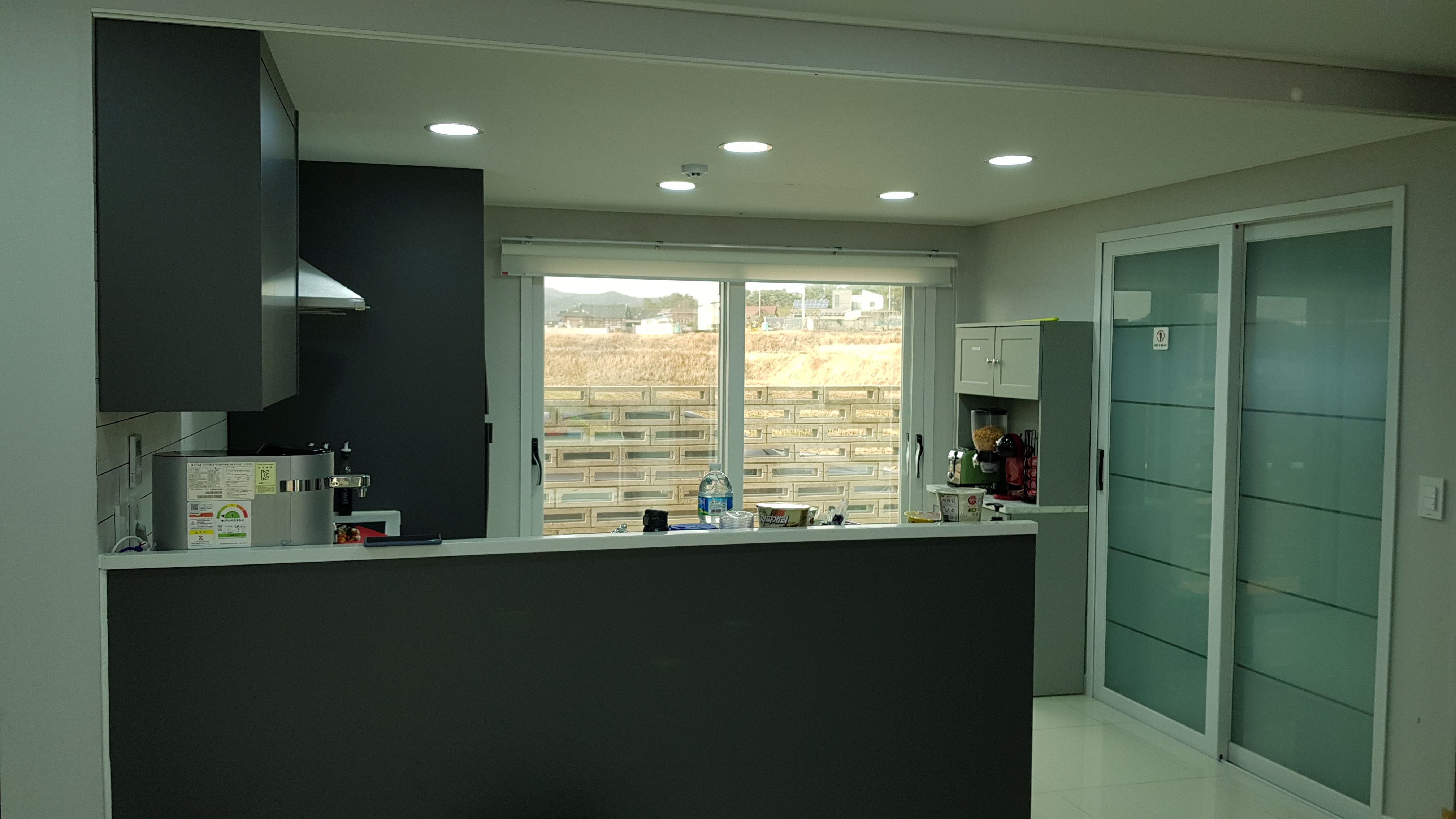 들어가면 넓직한 거실이 나온다. 지은지 얼마 안된지 낡은 곳 없이 깨끗하고 청소상태도 훌륭하다. 짐을 풀러 놓고 사진을 찍은 터라 물건이 널려있는 점은 감안 하고 봐야겠다.