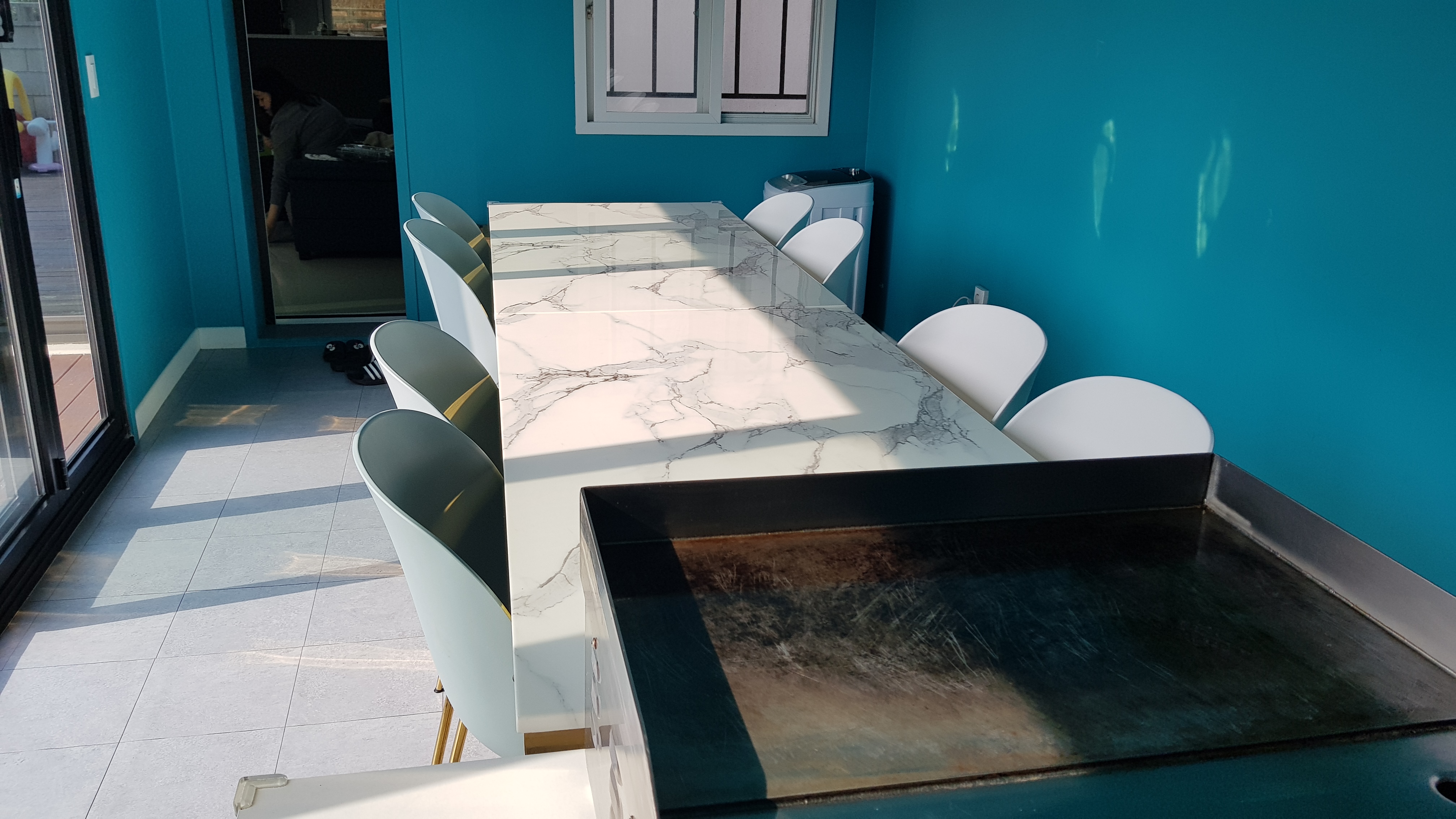 거실에서 연결되어있는 다이닝룸. 고기를 구워먹을 수 있는 그릴이 있고 여기는 사용하려면 추가요금이 있다. 이번 여행 컨셉은 아이와 부모 모두가 편하고 행복하는 것이기에 먹는건 간단식품과 배달시켜 먹기로 해서 사용 안했다.