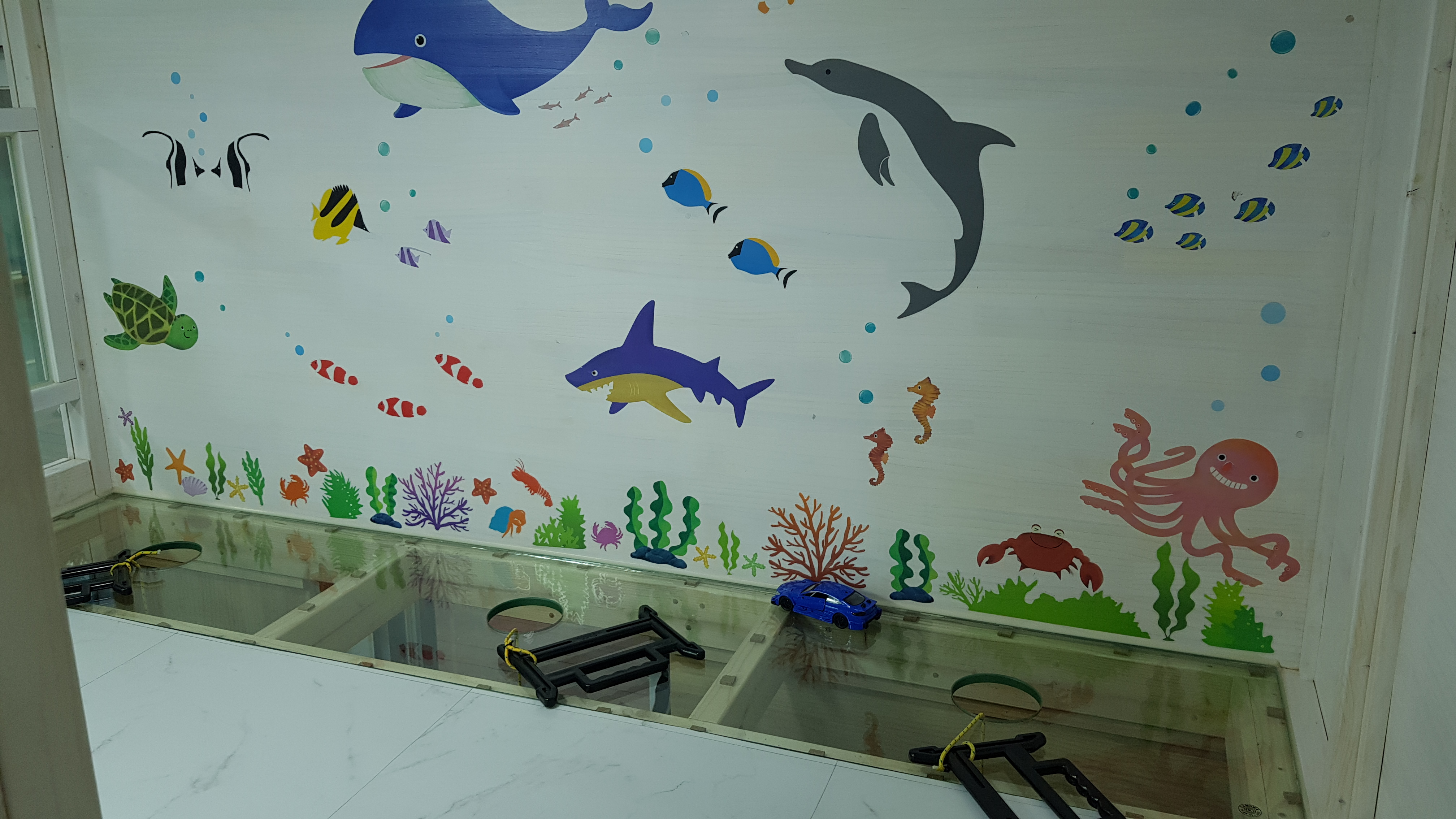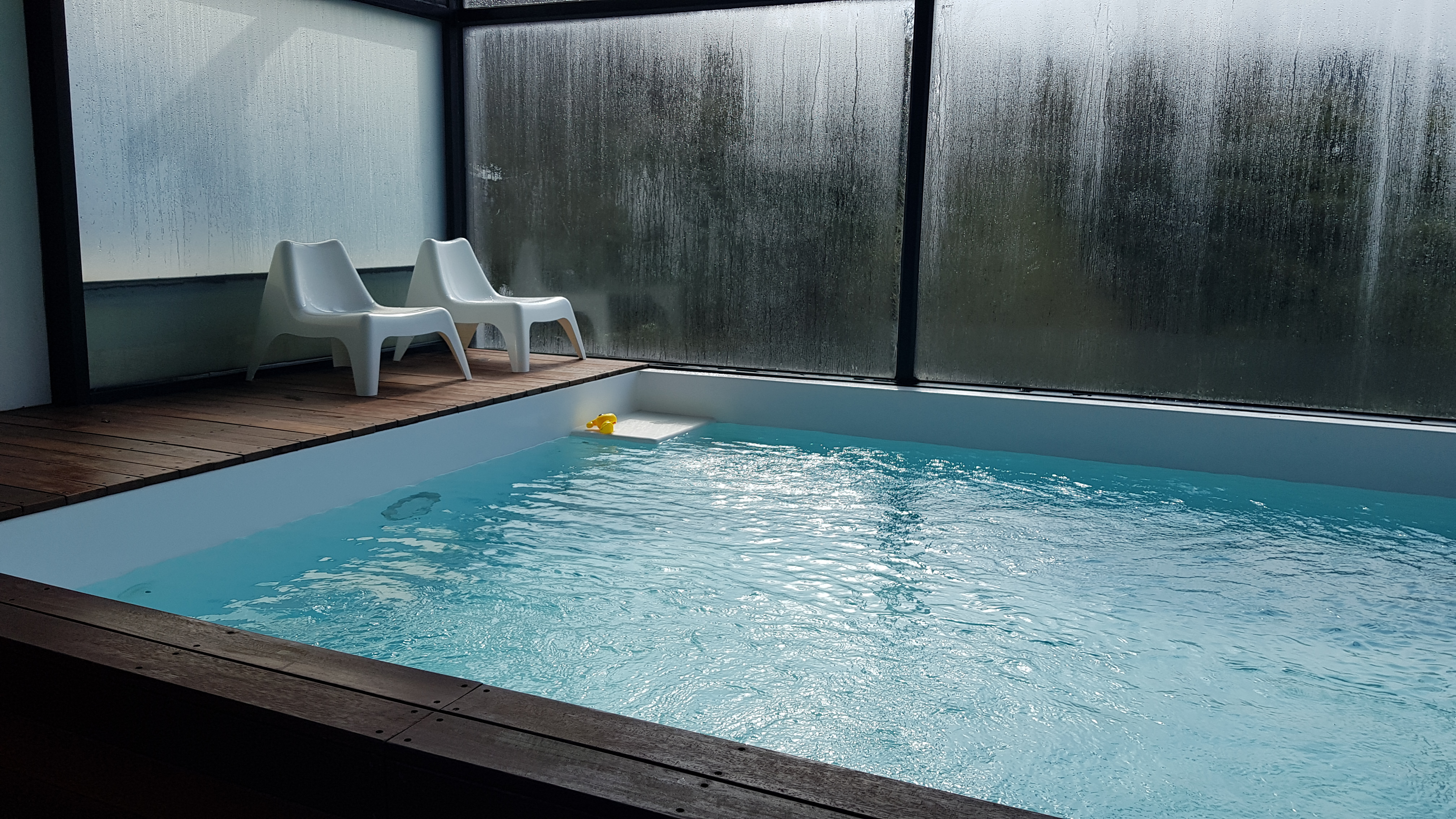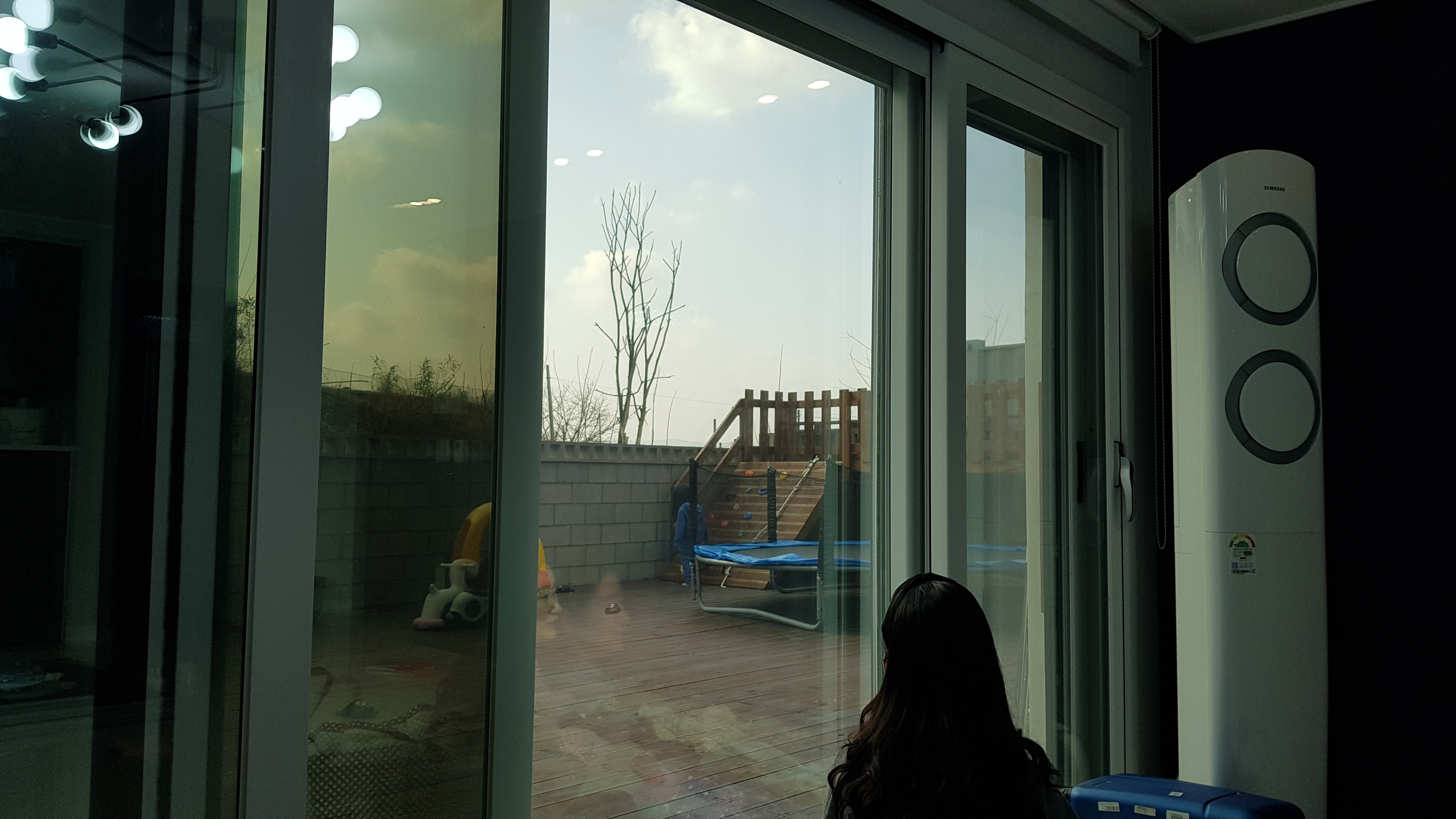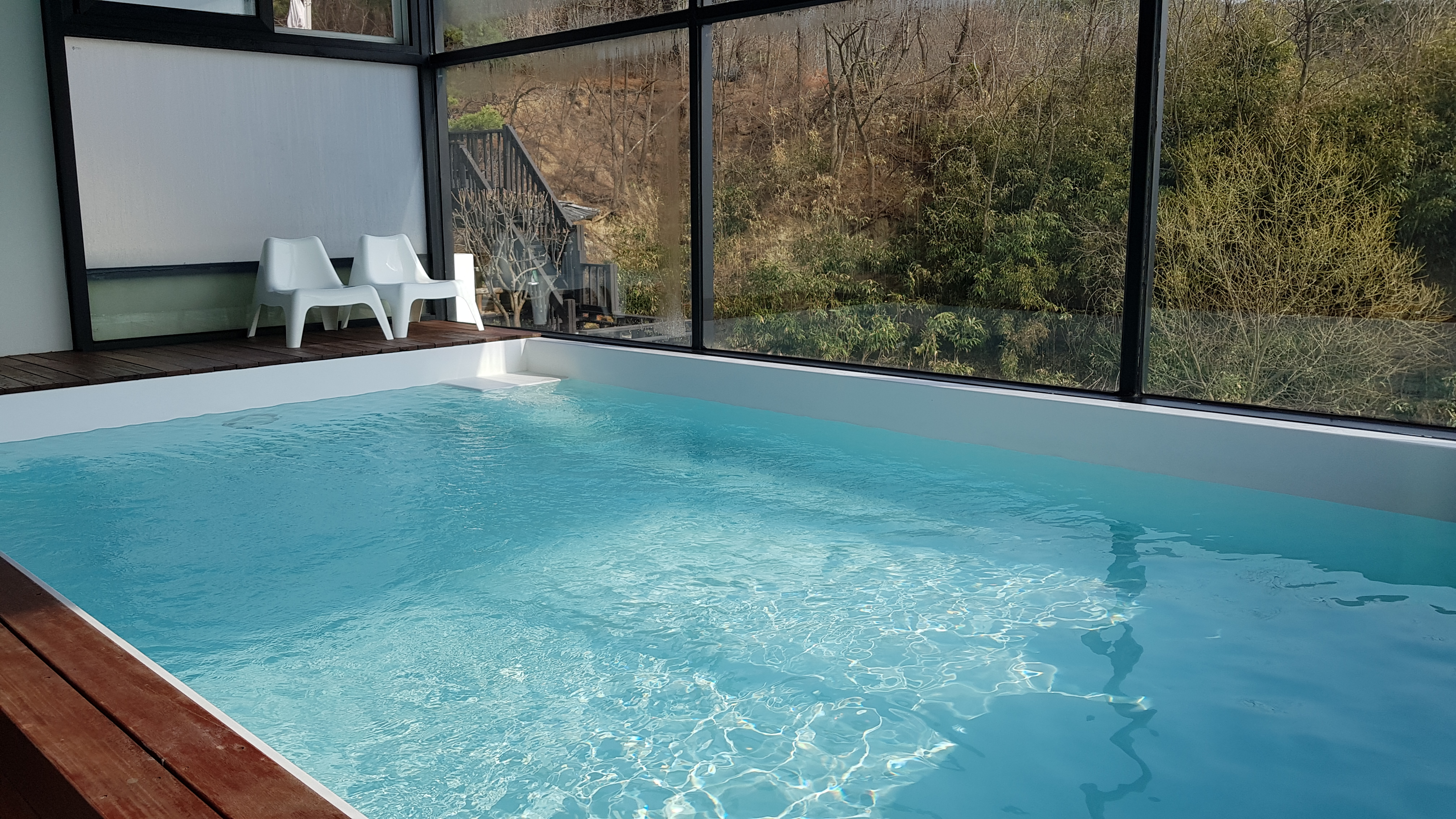 수영장은 2층 패밀리룸과 마주보고 있다. 문을 열고 들어가자 공기가 훈훈하다. 이날은 약간 흐려 햇볕이 들지 않았는데 날씨가 좋으면 더 따뜻할것 같다. 아이들이 수영하다 물밖에 나와서도 춥지 않아서 좋았다. 그리고 수영장문과 2층 화장실 문이 마주보고 있어서 수영을하고 바로 화장실로 가서 씻을 수있는 점도 좋았다.