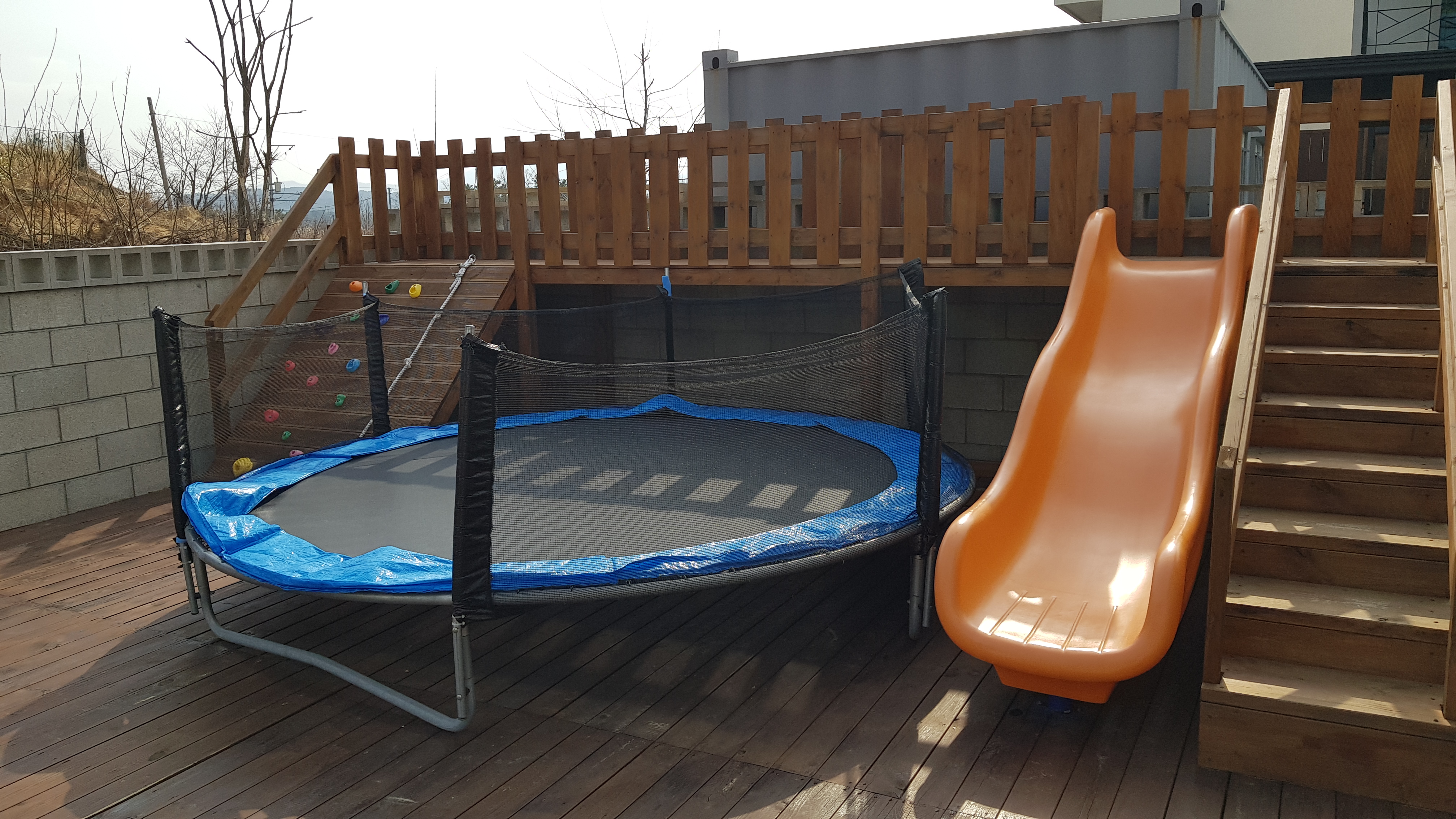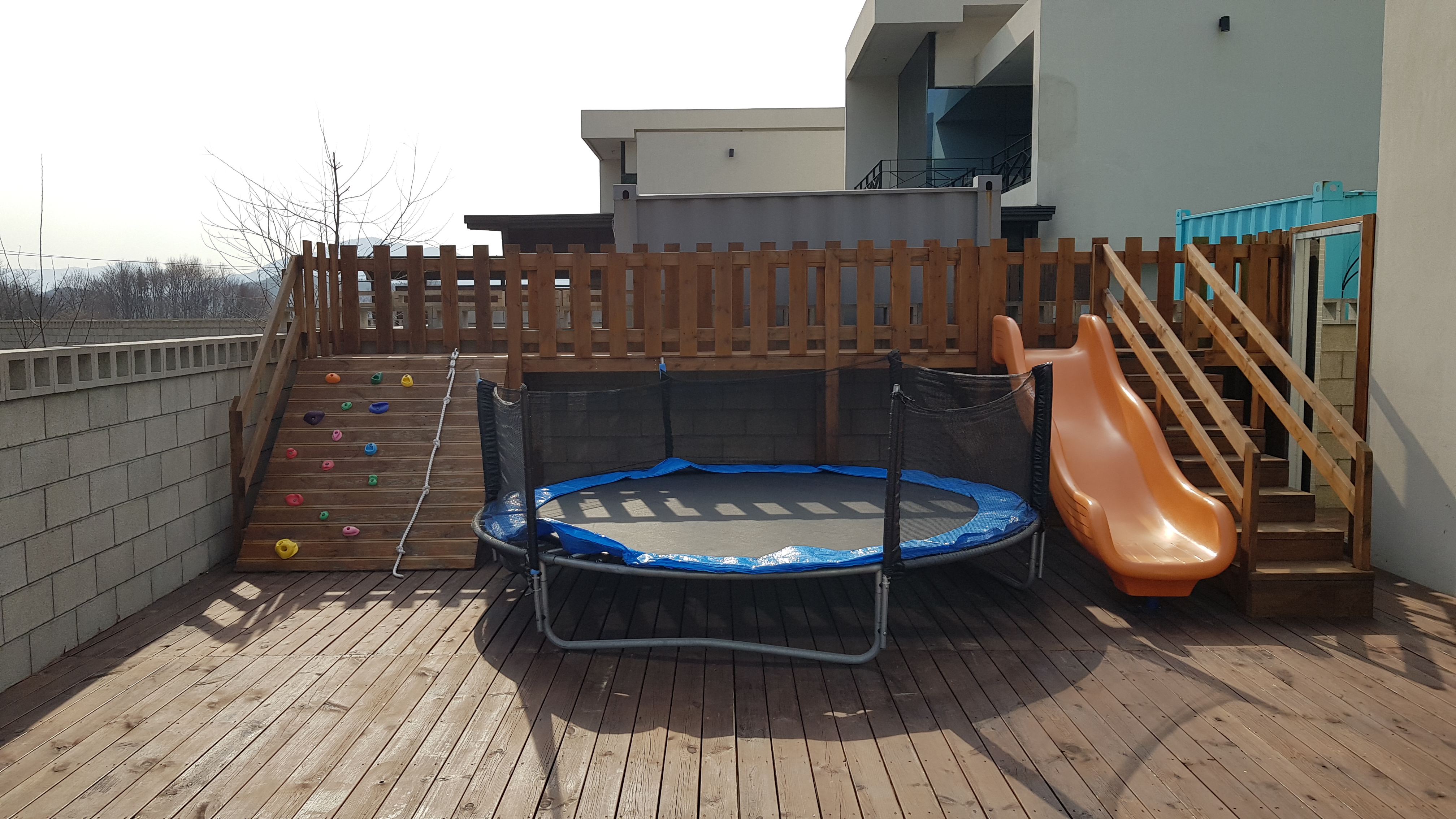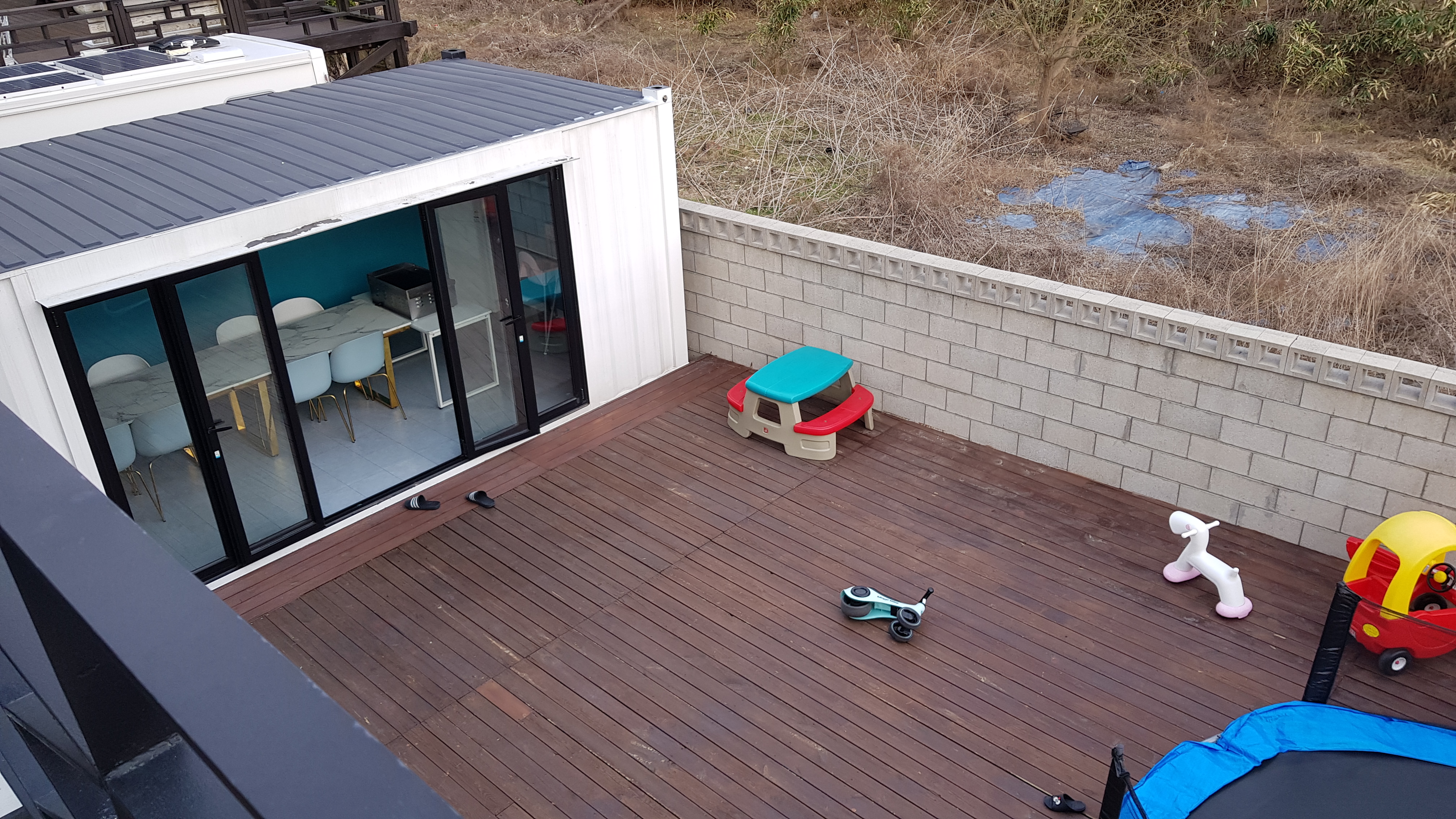 수영장에에서 바깥으로 나가는 문을 통해 데크로 나갈 수가 있다.