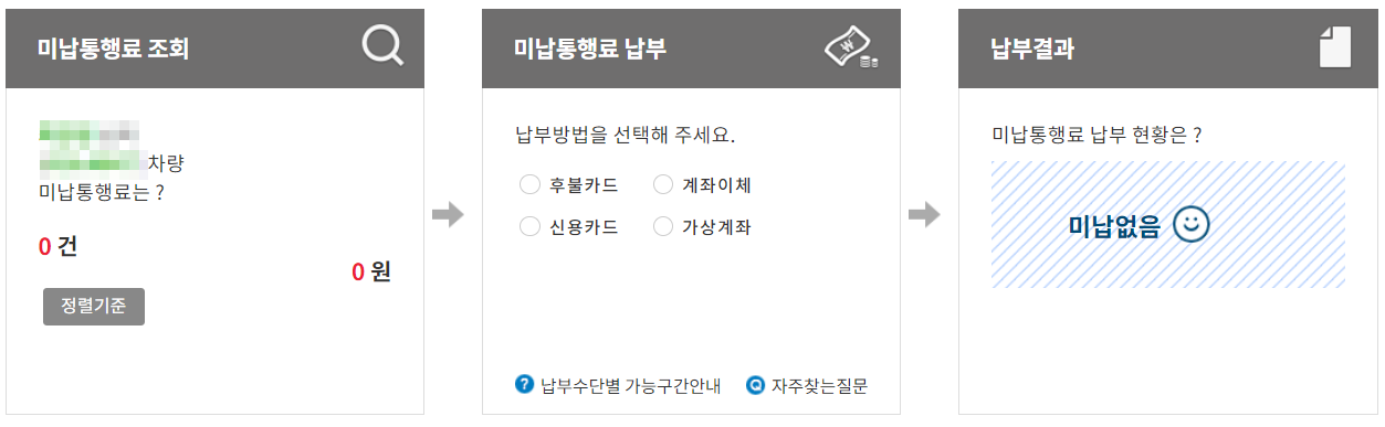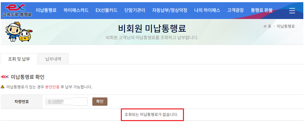 안내 받은 카톡의 가상계좌로 납부 후 고속도로 미납요금 홈페이지에 조회해 보았다. (약간의 확인병 같은게 있는 지도 모르겠다.)