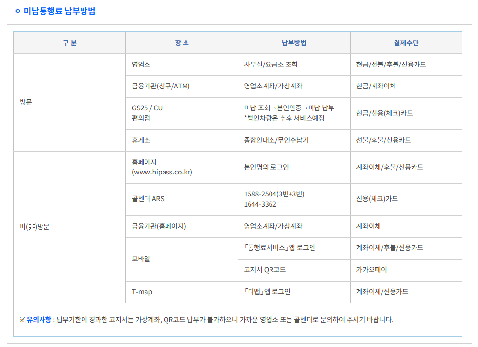 ㅣ미납통행료 납부방법