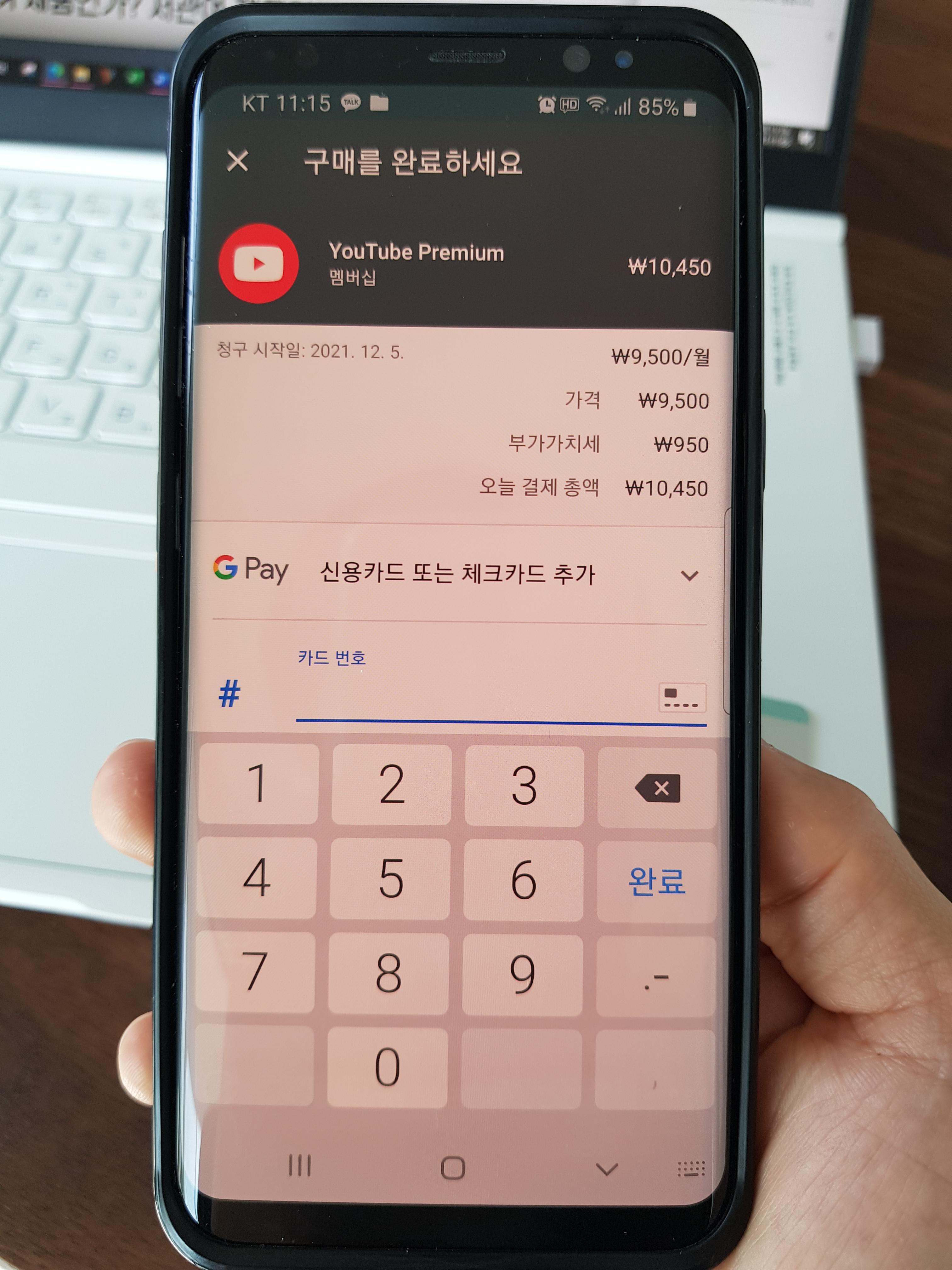 대한민국에서 스마트폰을 사용하는 사람 중에 유튜브를 보지 않는 사람은 아마도 거의 없을 것으로 예상한다. 이제 여든을 앞두고 계신 아버지께서는 카톡 사용하는 걸 어려워 하셔서 메시지를 보낼때는 아직 문자를 사용하신다. 그런데 얼마전 데이터가 부족하다며 추가요금이 나온다고 해서 살펴보니 유투브를 즐겨 보고 계셔서 그런 것이었다. 필자는 유료인 프리미엄 회원으로 사용한지 1년이 조금 넘었다. 신용카드로 매달 마지막날에 자동 결제가 되도록 해 두었으며 약1만원의 요금으로 유투브 프리미엄의 혜택을 뽕을 뽑도록 누리고 있었다. 얼마전 유튜브 결제로 등록해둔 신용카드를 해지하면서 결제일에 결제가 되지 않았고 다시 일반회원으로 돌아왔다. 결제일 전에 다른 체크카드로 결제수단을 변경 하려고 했으나 ‘사용할 수 없는 카드유형’ 이라며 결제가 되지 않았다. 일반회원으로 전환되고서 영상을 볼 때마다 광고에 시달리고 화면이 꺼진 상태에서 유튜브도 화면과 같이 꺼져버리니 여간 불편하고 답답한게 아니다. 처음부터 맛을 들이지 않았다면 몰랐겠지만 이미 길들여진 듯하다. 결국 마음먹고 해결 방법을 찾아서 결제한 방법에 대해서 남겨보고자 한다.