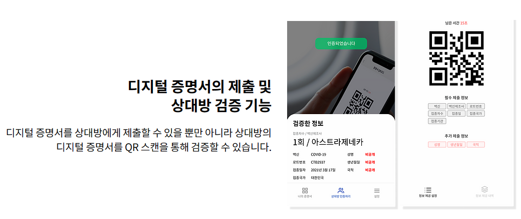 쿠브는 디지털 증명서로서 코로나때 접종 확인증으로 많이 이용했었는데, 이뿐만 다양한 곳에서 인증 시스템으로 활용할 수 있다. 공항에서 비행기 탑승 시 신분증이 없을 때 이렇게 신분증을 대신해 인증에 활용할 수 있다.