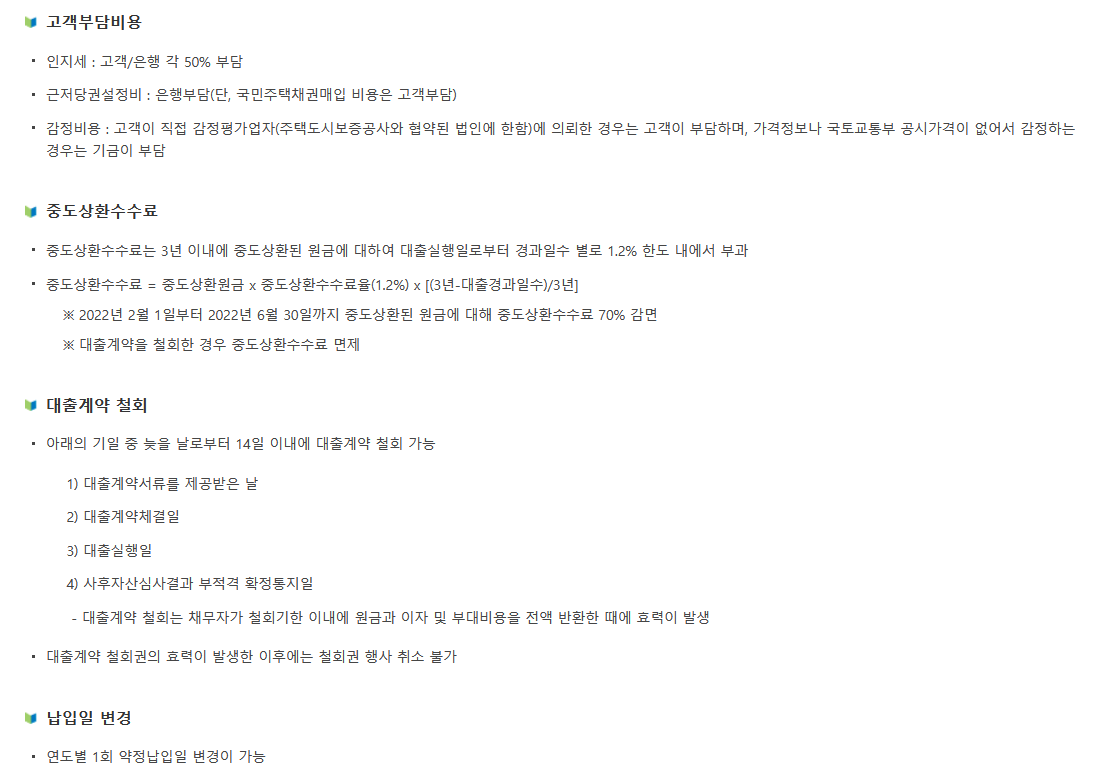- 근저당권설정비: 은행부담 (국민주택채권매입 비용 고객부담)