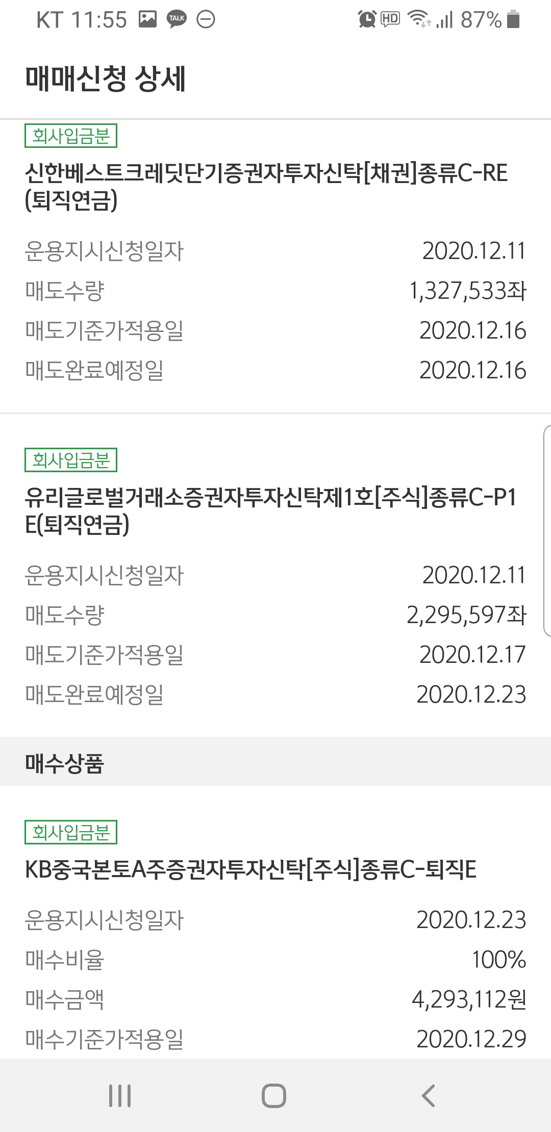 결과 4% 대에서 시작했던 운용수익률은 퇴직연금을 정산받을 때 30% 대 까지 올랐다. 30% 수익률이라고 하면 천만원일때 300만원의 추가 수익을 거둔 것이다. 두둑하게 보너스를 받은 기분이 들었다.