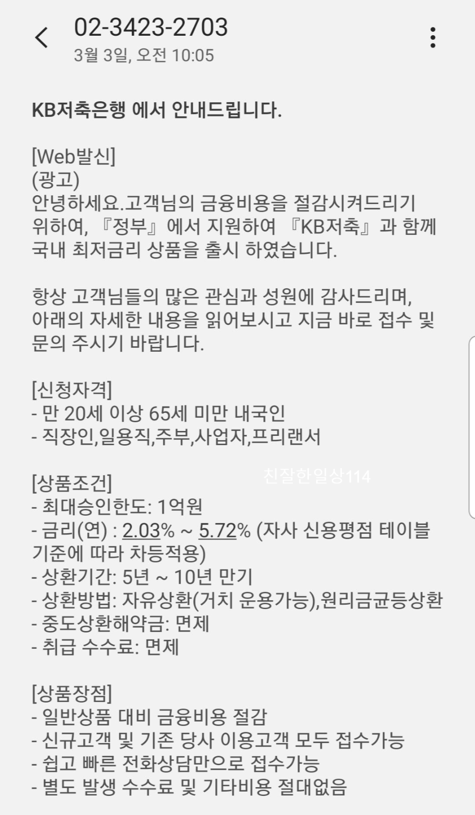 대출을 미끼로 한 국민은행 사칭 문자 스미싱
