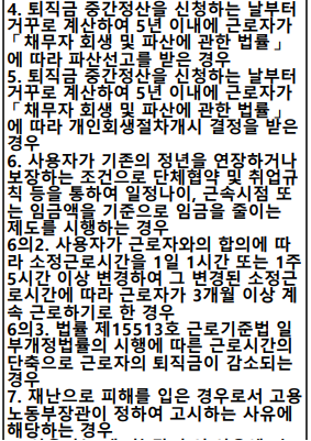 5.  퇴직금 중간정산을 신청하는 날부터 거꾸로 계산하여 5년 이내에 근로자가 “채무자 회생 및 파산에 관한 법융”에 따라 개인회생절차개시 결정을 받은 경우